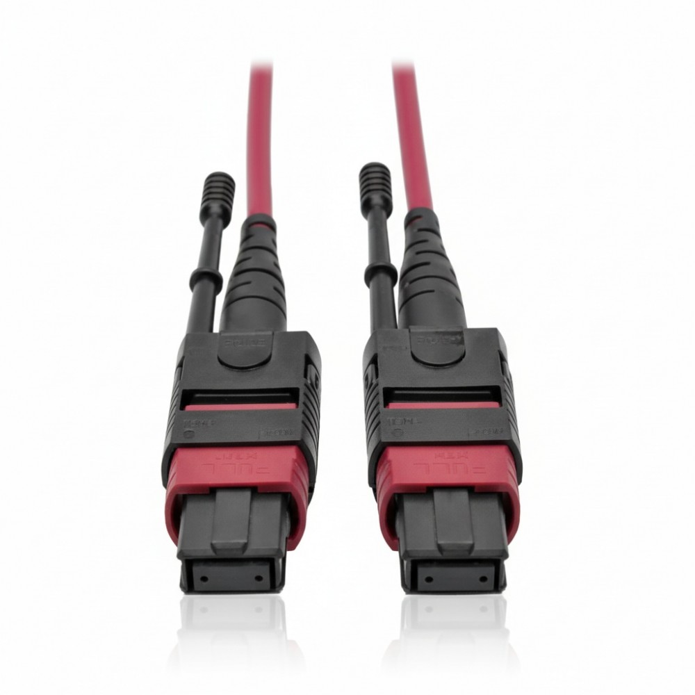 The Eaton N845-10M-12-MG is a high-performance, 10-meter MTP/MPO multimode patch cable engineered for the demanding bandwidth requirements of modern data centers and telecommunication environments. This OM4-rated fiber optic cable is designed to support 40 and 100 Gigabit Ethernet speeds, making it an essential component for high-density network connections between equipment such as switches and servers. It addresses the critical need for reliable, high-speed data transmission in core networking infrastructure. Utilizing 50/125 micron duplex glass fiber, this cable ensures error-free signal transfer and is fully compatible with both QSFP+ 40GBASE-SR4 and QSFP28 100GBASE-SR4 connections. The 12-fiber MTP/MPO female connectors offer a significantly higher density compared to traditional SC connectors, optimizing rack and circuit card space. Each connector is 100% tested for low insertion loss and back reflection, guaranteeing superior performance and adherence to stringent industry standards. Ideal for high-density fiber patching between Main Distribution Frames (MDFs) and Intermediate Distribution Frames (IDFs), the cable features push/pull tabs for easy installation and removal, even in crowded rack environments. Its plenum-rated jacket allows for safe deployment in ceilings, walls, and ducts, ensuring compliance with fire safety regulations for concealed spaces. The distinctive magenta color provides instant identification as an OM4 cable, simplifying management and maintenance within complex cabling infrastructures.
