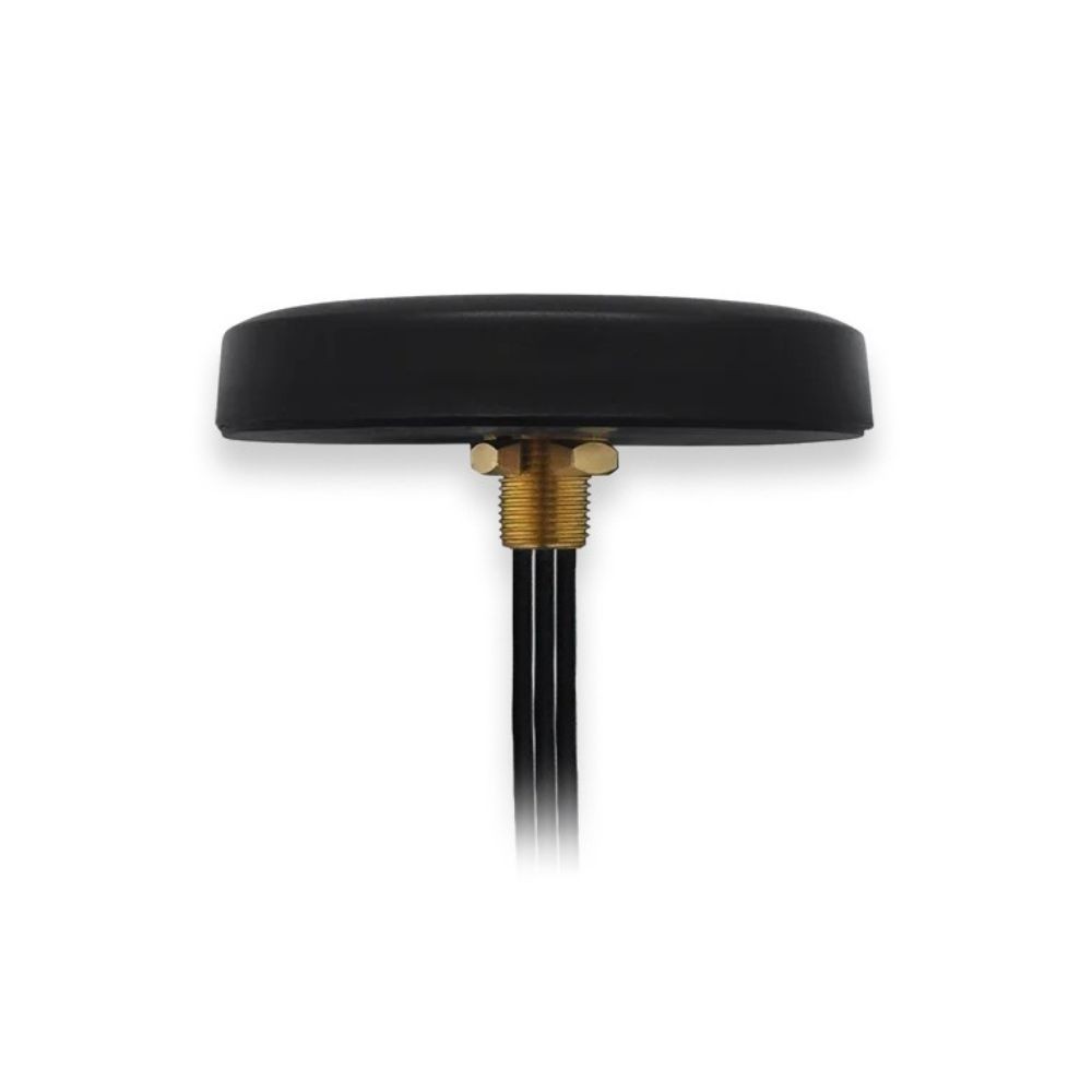 The Teltonika PR1KCS28 is a multi‑function rooftop antenna that combines mobile cellular, GNSS, and Wi‑Fi coverage into a single compact unit for engineers integrating external wireless reception on routers and gateways. It supports wide frequency bands across LTE, GNSS, and Wi‑Fi with omnidirectional patterns to enhance signal capture in outdoor, vehicular, and industrial environments. The antenna is designed for screw‑mount installation and rugged outdoor use with high ingress protection and long cable leads for flexible routing. It fits deployments where one antenna must serve multiple radio systems for connectivity and positioning.
