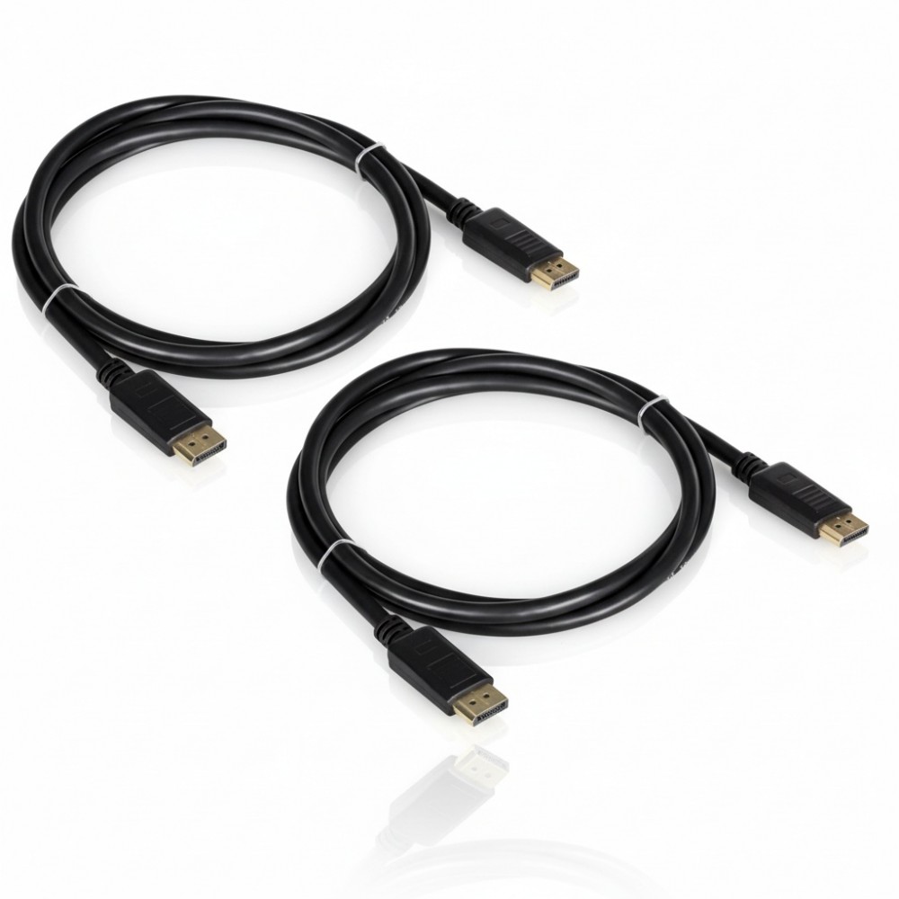 The TRENDnet TK-DP06/2 is a set of two high-quality, 6-foot DisplayPort 1.2 cables designed for reliable video and audio signal transmission. This product is engineered for connecting DisplayPort-enabled computers to monitors or for integrating with more complex multi-display KVM switch setups, such as TRENDnet's TK-240DP and TK-440DP models. It provides a dependable physical link for professional environments where consistent display performance is critical. These cables support a maximum data transfer rate of 21.6 Gbit/s, accommodating demanding high-resolution and high-refresh-rate applications. They are capable of handling 4K UHD resolutions up to 3840 x 2160 at a 60Hz refresh rate, as well as gaming-focused resolutions like 2560 x 1440 at 144Hz. The robust construction ensures a stable connection for video cards, monitors, and other DisplayPort devices. The TK-DP06/2 is an ideal solution for system administrators and IT professionals setting up workstations that require direct, high-fidelity connections. The 6-foot length offers adequate flexibility for typical desk arrangements, allowing for clean cable management without excess slack. This two-pack format delivers value and convenience, ensuring that the necessary components are on hand for dual-monitor KVM installations or for outfitting multiple workstations.