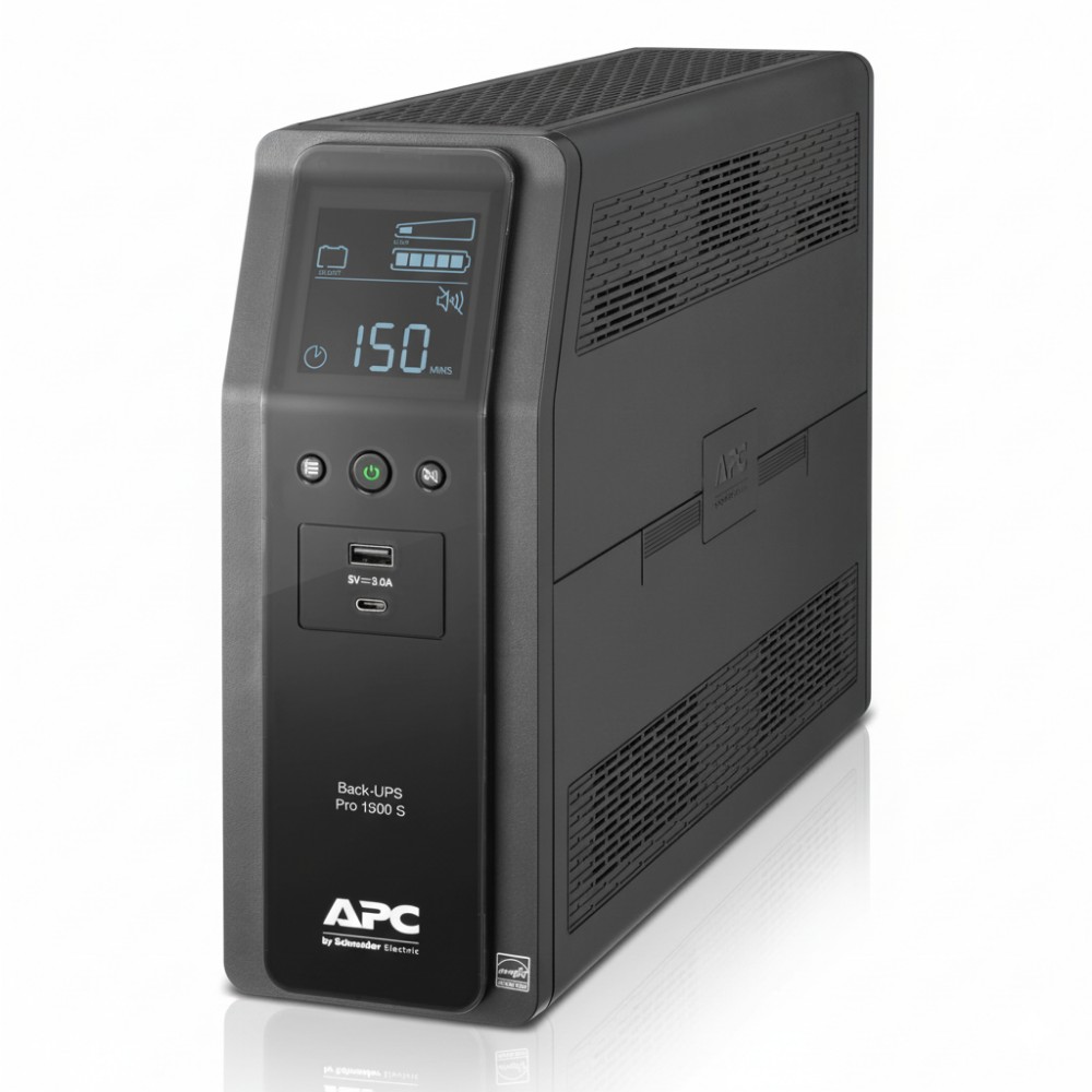 The APC BR1500MS2 is a line-interactive UPS in tower form, rated at 1,500 VA / 900 W, built for backing up workstations, servers, networking gear, and home/office systems during power disturbances. It supplies a pure sine-wave output, which is more suitable for modern, sensitive electronics (active PFC PSUs, gaming rigs, NAS, etc.). The unit has Automatic Voltage Regulation (AVR) to correct voltage sags and surges without switching to battery, thereby extending battery life under fluctuating power conditions. In the event of a blackout, it switches over with an 8 ms typical (10 ms maximum) transfer time. It features 10 total outlets (6 battery-supported + 4 surge-only), 2 USB charging ports (Type-A and Type-C), and an LCD interface that displays real-time UPS status (load, battery levels, runtime). The UPS uses user-replaceable VRLA batteries, has built-in surge and data-line protection, and comes with a lifetime equipment protection guarantee ($500,000) according to its policy.