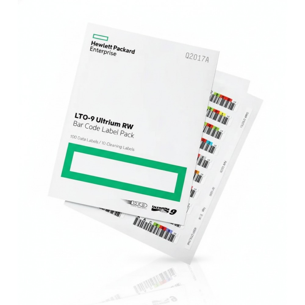 The HPE Q2017A is a professionally produced Bar Code Label Pack for LTO-9 Ultrium tape media, designed for IT departments utilizing automated tape libraries for data archiving and backup. This product provides a simple, reliable solution to the critical task of media identification, eliminating the time-consuming and error-prone process of printing labels in-house. It is specifically engineered for organizations that require absolute data integrity and operational efficiency within their long-term storage infrastructure. By providing pre-printed, sequentially unique barcodes, this label pack ensures that no two cartridges are ever identical, which is essential for preventing data management conflicts in large archives. The labels are manufactured to stringent HPE standards and have been thoroughly tested to guarantee scannability and adhesion in demanding, high-duty-cycle robotic library environments. This focus on quality helps prevent disruptions to backup and restore operations that can occur from poorly printed or low-quality custom labels. Each pack contains a complete labeling solution for 100 data cartridges and 10 cleaning cartridges, allowing for streamlined integration into an existing media rotation. Proper labeling is fundamental to the speed and reliability of automated media handling systems. The HPE Q2017A pack is an essential accessory for any business that relies on LTO-9 technology for secure, compliant, and cost-effective offline data protection, allowing IT staff to focus on more critical administrative tasks.