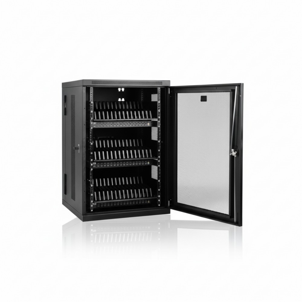 The Eaton CS48USB is a robust, multi-device charging and syncing station engineered to meet the demanding requirements of modern IT environments. This unit provides a centralized, secure, and efficient solution for managing up to 48 tablets, smartphones, and other USB-chargeable devices. It is ideally suited for sectors such as education, healthcare, retail, and commercial offices, where a large fleet of mobile devices requires constant readiness and secure storage. The CS48USB addresses common challenges like device disorganization, slow charging, and security vulnerabilities, ensuring that critical mobile assets are always powered and ready for use. Beyond simple charging, the CS48USB excels in its integrated syncing capabilities, allowing IT administrators to simultaneously update or configure all connected devices through a single host connection. Each of the 48 USB ports delivers up to 2.4 amps, facilitating the fastest possible charge for a wide range of devices, including iPads, Android tablets, Kindle, and Surface models. This high-speed charging ensures minimal downtime, maximizing productivity and device availability across an organization. Designed for flexible deployment, the charging station ships fully assembled and can be securely mounted to a wall, desk, table, counter, or floor to suit various spatial constraints. Its sturdy steel construction, complemented by a locking door with included keys, provides a secure enclosure that safeguards valuable equipment against theft, damage, and tampering. Thoughtful features like flow-through ventilation prevent device overheating, while removable dividers and integrated cord management contribute to a neat and organized charging environment.