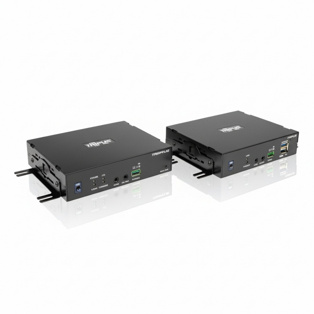 The Eaton B127F-1A1-SM-DD is a high-performance DisplayPort over Fiber Extender Kit, comprising a transmitter and receiver system engineered to deliver uncompromised Ultra HD video and audio over extended distances. This solution is ideal for complex IT environments, particularly digital signage installations, large conference rooms, educational facilities, or trade show booths where DisplayPort source devices and remote displays are situated further apart than conventional copper cabling permits. It effectively addresses the challenge of long-distance signal transmission, ensuring reliable delivery of high-resolution content without degradation. This extender kit excels in maintaining pristine signal integrity, supporting Ultra HD 4K x 2K video resolutions up to 3840 x 2160 at 30 Hz with full 4:4:4 chroma subsampling. It transmits rich, uncompressed multi-channel digital audio, including DTS-HD, Dolby AC-3, and 8-channel LPCM, guaranteeing a high-quality audiovisual experience. Compatibility with HDCP 2.2, DisplayPort 1.2a, and EDID standards ensures broad device support. Crucially, its fiber optic transmission medium provides inherent immunity to electromagnetic interference (EMI), a significant advantage in electrically noisy environments. The system also includes built-in equalization to automatically fine-tune image quality, eliminating the need for manual adjustments. Designed for flexible deployment, the B127F-1A1-SM-DD extends signals up to 6.2 miles (10 kilometers) over user-supplied duplex singlemode LC fiber cabling. Its plug-and-play operation requires no additional software or drivers for installation, simplifying setup. The included transmitter features a local HDMI output, allowing for convenient monitoring of the remote display's content. Additionally, integrated DIP switches offer the versatility to extend either USB 1.1, bi-directional IR, or RS-232 control signals, providing comprehensive remote management capabilities. Both the transmitter and receiver units come with mounting hardware for secure installation on walls, poles, or within 19-inch rack enclosures.