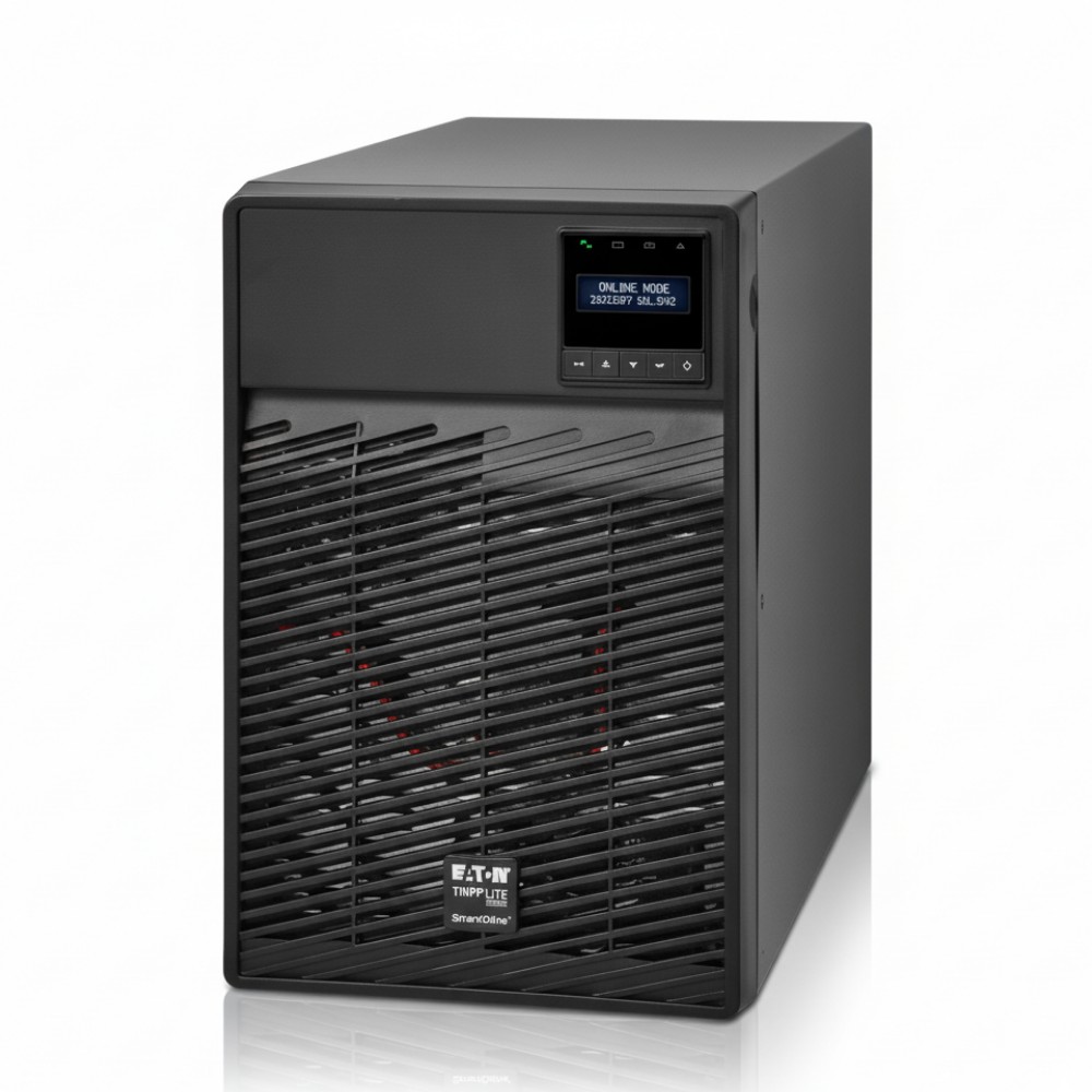 The Eaton SU3000XLCD is a line-interactive (in fact true on-line double-conversion) UPS designed for IT professionals who need zero transfer time backup with pure sine-wave output in a tower form-factor. Rated at 3000 VA / 2700 W (120 V nominal), it protects critical servers, network switches, storage and telecom gear from blackouts, brownouts, surge events and noise. It features an LCD front panel for real-time status and configuration, USB and RS-232 ports (DB9), and supports optional network-management cards for remote monitoring and control. External battery extension (up to 4 EBMs) is supported for longer runtime when required. In deployment it works best in small data-rooms, racks or network closets where uptime matters, and you want a UPS that slots into a tower or shallow-rack-format. It gives you enterprise-grade protection without needing a full 3-phase infrastructure.