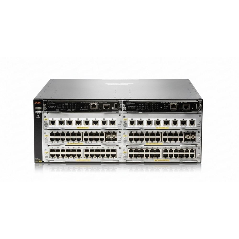 Built using Aruba 6th-generation ProVision ASIC, the 5412R delivers enterprise resiliency and programmability, offering a 2 Tbps backplane and sub‑2.1 µs latency for smooth traffic handling . The modular design accommodates up to 12 line cards—supporting combinations of RJ‑45 PoE+, multi‑gigabit ports, SFP+, and 40 Gb uplinks across the chassis