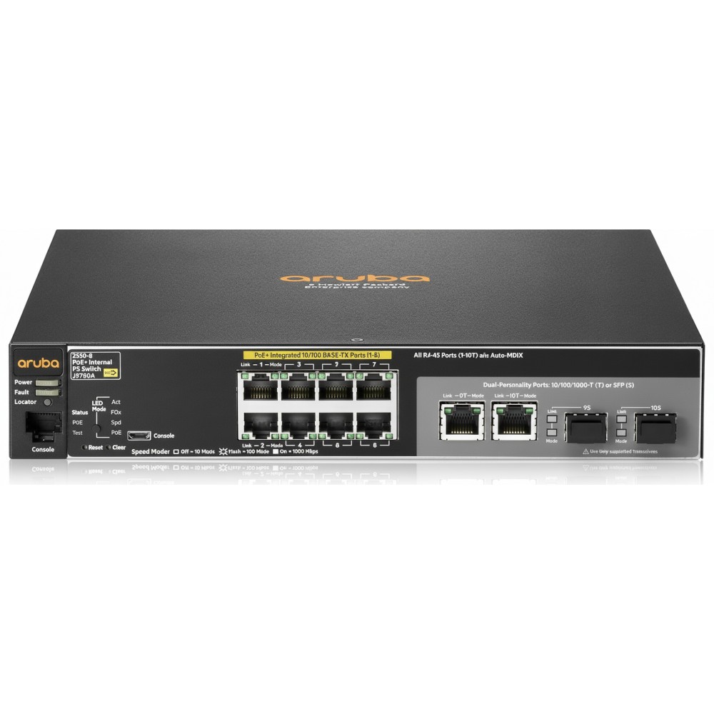 The HPE Aruba 2530‑8 PoE+ (J9780A) is a fully managed Layer 2 switch offering 8 autosensing Fast Ethernet ports with PoE+ and two dual‑personality uplink ports. Ideal for small businesses, branch offices, or point-of-sale environments, it delivers secure, reliable connectivity in a compact, fanless form factor.