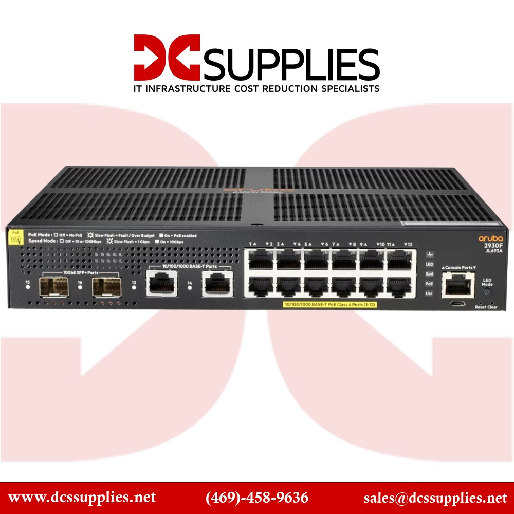 The HPE Aruba 2930F 12G PoE+ switch (JL693A#ABA) is a versatile Layer 3 managed Ethernet switch designed for enterprise branch offices, SMBs, and retail environments. It offers 12 Gigabit PoE+ ports for powering devices like IP phones, cameras, and access points, alongside 2 high-speed 10G SFP+ uplinks for seamless network integration. This switch delivers robust performance, security, and simplified management for modern digital workplaces..