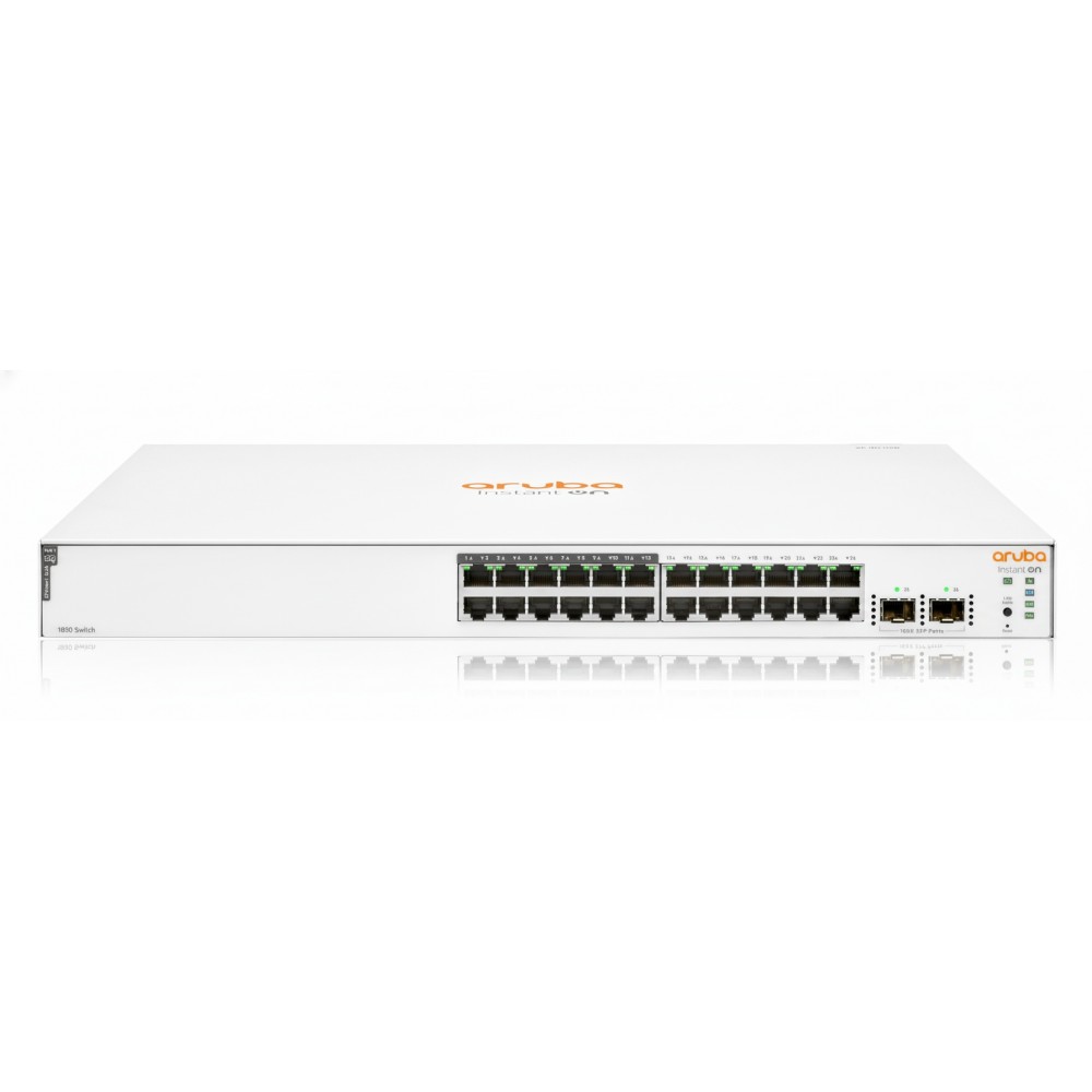 The HPE JL813A#B2E is an Aruba Instant On 1830 series smart-managed Layer 2 switch designed for small businesses requiring a reliable and affordable network foundation. It provides essential Gigabit connectivity for environments like retail stores, professional offices, and tech startups that need to support IT, mobile, and cloud applications without complexity. The primary role of this switch is to deliver a secure, easy-to-deploy wired infrastructure that can power key devices. This model is engineered for operational efficiency, featuring 24 RJ-45 10/100/1000 ports, with 12 of those ports providing Class 4 PoE+ capabilities. With a total power budget of 195W, it can easily drive devices such as wireless access points, IP surveillance cameras, and VoIP phones, eliminating the need for separate power adapters. Two dedicated 1GbE SFP fiber ports serve as high-speed uplinks, preventing traffic bottlenecks to the core network. Deployment and management are significantly simplified through the Aruba Instant On platform. The JL813A can be configured and monitored remotely using a cloud-based web portal or a dedicated mobile app, making it accessible even for non-technical users. For those who prefer traditional methods, a local web GUI is also available. Its 1U rack-mountable form factor allows for flexible installation in a server rack, on a tabletop, or mounted to a wall.