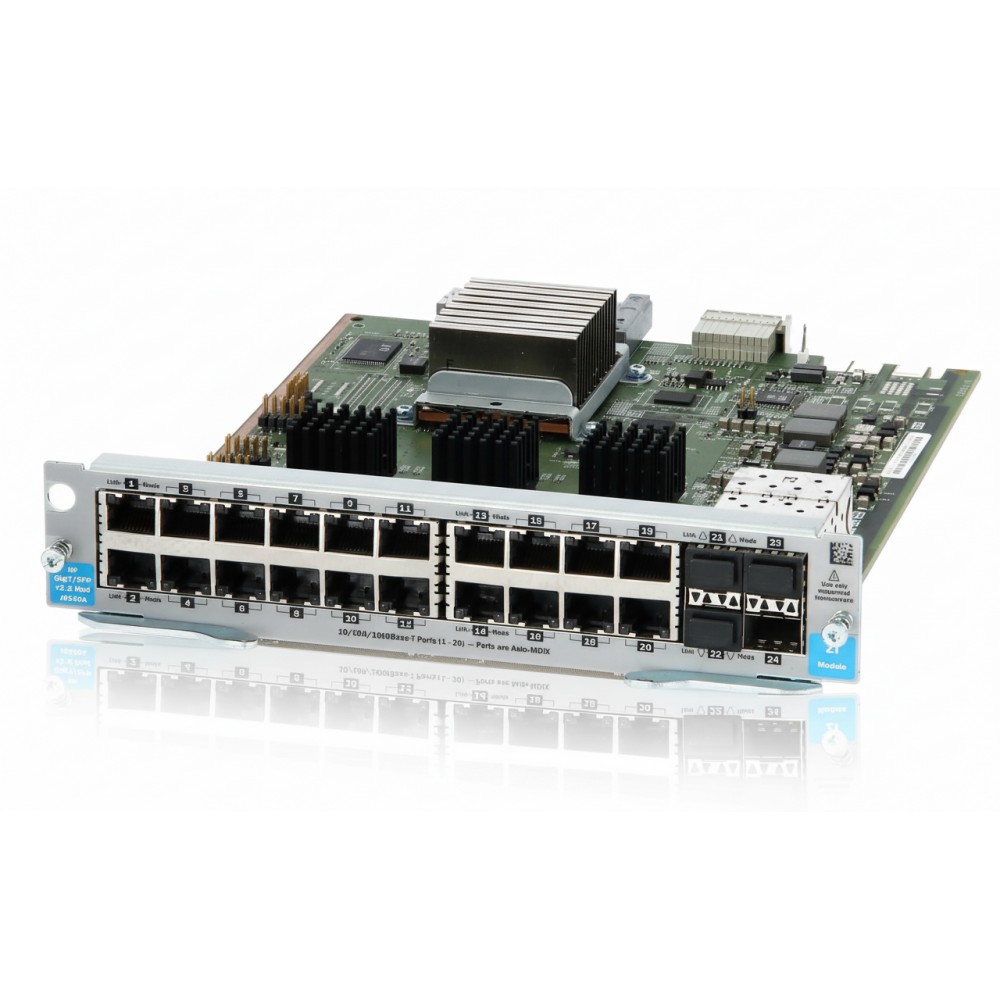 Ideal for IT managers looking to expand network capacity without replacing core infrastructure, the HP J9549A module integrates directly into HP modular switch chassis systems. It features 20 autosensing 10/100/1000BASE-T ports, plus 4 mini-GBIC SFP slots that can be used for fiber uplinks or redundant stacking. Each port supports flow control, jumbo frames, and IEEE 802.1p QoS for reliable performance and precise traffic handling.