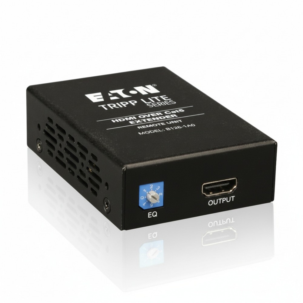 The Eaton B126-1A0 is a robust HDMI over Cat5/Cat6 extender remote receiver designed for seamless video and audio signal distribution in challenging environments. This box-style receiver functions in conjunction with a B126-002 or B126-004 transmitter (sold separately) to extend high-definition HDMI signals beyond the typical limitations of standard HDMI cabling. It is an ideal solution for digital signage, trade shows, classrooms, and retail settings where source equipment is located a significant distance from the display, or where multiple displays are required from a single source. Engineered to deliver exceptional visual fidelity, the B126-1A0 supports uncompressed 1080p video at 60 Hz up to 150 feet (45.7 meters) over cost-effective Cat5e/6 cabling. Beyond impressive video capabilities, it also ensures rich audio experiences, supporting both stereo and full 7.1-channel surround sound. This device maintains 24-bit True Color depth and HDCP compatibility, guaranteeing compatibility with modern digital content and displays. Installation of the B126-1A0 is straightforward and plug-and-play, requiring no software or drivers, facilitating rapid deployment. Its compact form factor allows for versatile physical and logical placement within an IT infrastructure, offering wall, rack, or pole mounting options with the included hardware. Built-in equalization control further enables fine-tuning of image quality at the remote display, ensuring optimal performance across varying cable lengths.