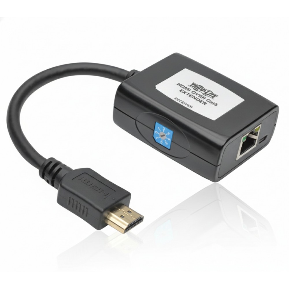The Eaton B126-1A0-U HDMI over Cat5/Cat6 Active Extender Receiver is engineered to reliably extend high-definition audio and video signals beyond the reach of standard HDMI cabling. This pigtail-style receiver works in conjunction with a B126-series transmitter (sold separately) to deliver crystal-clear 1080p video and stereo audio to an HDMI display, making it an ideal solution for digital signage, educational environments, trade shows, and other installations where the video source requires significant distance from the display. It addresses the common challenge of signal degradation over long runs by leveraging readily available and cost-effective Cat5e/6 infrastructure. Utilizing standard Cat5e or Cat6 cabling, this active extender receiver can transmit a 1080p (60 Hz) signal up to 125 feet (38.1 meters), ensuring excellent visual fidelity. It supports HDCP 1.4, allowing for the display of protected content. The receiver features built-in equalization control, enabling fine-tuning of the image quality directly at the display to compensate for cable length variations and ensure optimal picture clarity. Power is conveniently supplied to the unit via an included USB Micro-B to USB-A cable, connecting to a USB port on the display or a standard USB wall charger, eliminating the need for an external power brick. Designed for straightforward deployment, the B126-1A0-U is a plug-and-play device that requires no software or drivers, facilitating rapid setup across various operating systems and HDMI sources. Its compact form factor and pigtail HDMI connection allow for discreet integration behind displays. Built-in RJ45 LEDs provide immediate visual confirmation of power and signal presence, simplifying troubleshooting and ensuring reliable operation within the existing IT infrastructure.
