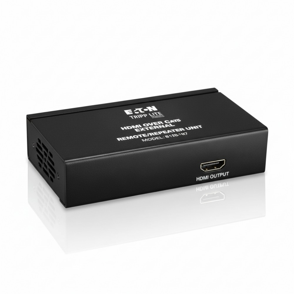 The Tripp Lite by Eaton B126-110 is an active HDMI over Cat5/Cat6 remote repeater engineered to extend and expand high-definition video and audio signals across complex IT infrastructures. As a critical component within the B126-Series ecosystem, this box-style repeater enables the deployment of digital signage, presentations, and multimedia networks where source and display distances exceed conventional HDMI cable limitations. It specifically addresses challenges in environments like retail, classrooms, or trade shows by allowing long-distance signal transmission and multi-display chaining. This device leverages standard Cat5e/6 cabling to deliver pristine 1080p (60 Hz) video up to 125 feet, or 1080i (60 Hz) signals up to 175 feet, between units. Beyond crystal-clear visuals, the B126-110 supports rich stereo and 7.1-channel surround sound audio, ensuring a comprehensive media experience. Its integrated equalization control allows for fine-tuning of image quality, compensating for potential signal degradation over extended cable runs, thus maintaining visual fidelity across all remote displays. Designed for flexible deployment, the B126-110 unit features a compact form factor that can be mounted to a wall, rack, or pole using the included hardware. This versatility makes it ideal for integrating into diverse physical spaces without requiring extensive modifications. The device operates as a plug-and-play solution, eliminating the need for complex software or driver installations, simplifying setup for engineers and IT managers. It integrates seamlessly into existing B126-Series HDMI over Cat5 installations, extending the reach and adding additional display points in a cascaded topology for a total chain distance of up to 700 feet for 1080i signals.