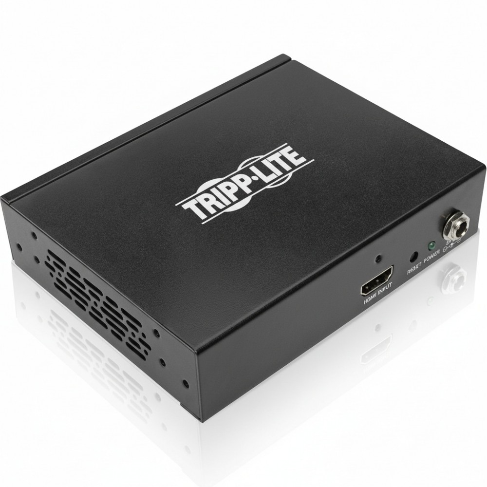 The Eaton B118-004-UHD-2 Tripp Lite 4-Port HDMI Splitter is engineered to effectively distribute high-definition audio and video signals from a single HDMI source to up to four separate HDMI displays simultaneously. This robust device is ideal for environments requiring compelling digital signage, engaging presentations, or synchronized video displays, such as classrooms, conference rooms, retail establishments, and hospitality venues. It eliminates the complexities of managing multiple display connections by providing a streamlined, high-performance solution for content replication. Leveraging HDMI 2.0 and HDCP 2.2 compliance, this splitter ensures full compatibility with the latest 4K hardware, delivering stunning Ultra High Definition (UHD) resolutions up to 3840 x 2160 at a smooth 60 Hz. Support for High Dynamic Range (HDR) significantly enhances visual fidelity with richer contrast and a wider spectrum of colors, while 36-bit Deep Color further contributes to vibrant and lifelike imagery. Advanced audio formats like DTS-HD, Dolby TrueHD, Dolby Digital Plus, and LPCM 7.1-channel surround sound are also fully supported, ensuring an immersive audio experience. Designed for flexible integration into diverse IT infrastructures, the B118-004-UHD-2 offers versatile form factors, supporting desktop, rack-mountable, and wall-mountable installations. Its plug-and-play design negates the need for software or drivers, facilitating rapid deployment. For larger-scale digital signage applications, multiple units can be cascaded up to three levels, enabling the distribution of a single source to as many as 64 displays without compromising signal quality. This makes it a scalable and efficient choice for expanding video distribution networks.