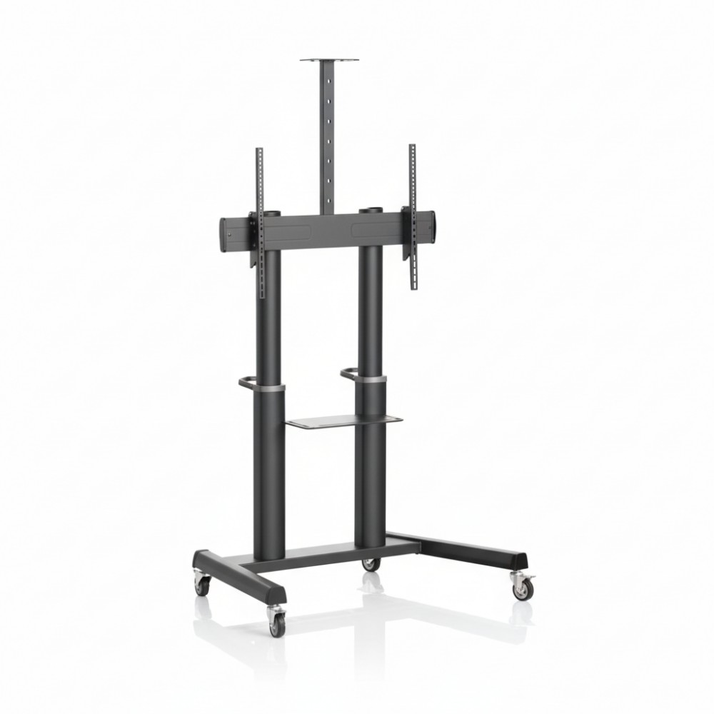 The Eaton DMCS70120AMUL is a robust, UL-certified mobile display cart, engineered for dynamic presentations and collaborative environments. It offers a secure, flexible solution for relocating large-format flat-panel displays, interactive whiteboards, or monitors from 70 to 120 inches. This heavy-duty rolling cart addresses the challenge of static display setups, enabling organizations to maximize resource sharing and optimize engagement across corporate, education, and healthcare settings. Designed for durability and user safety, the cart features a sturdy steel frame supporting displays up to 264 pounds. Crucially, it incorporates antimicrobial protection on handles, inhibiting the growth of bacteria, viruses, and fungi. This feature ensures a cleaner, healthier user experience, vital in shared public or medical spaces. Integrated 3-inch swivel casters provide smooth mobility, with locking mechanisms to secure the cart firmly in position during use. Deployment is flexible, allowing display height adjustments from 49.2 to 63 inches and tilt for optimal viewing. Its dual-column construction and VESA-compliant patterns ensure broad display compatibility. Cable management keeps wiring organized and out of sight, maintaining a professional appearance. Adjustable shelves provide convenient storage for peripherals like laptops or media players, each supporting up to 11 pounds.