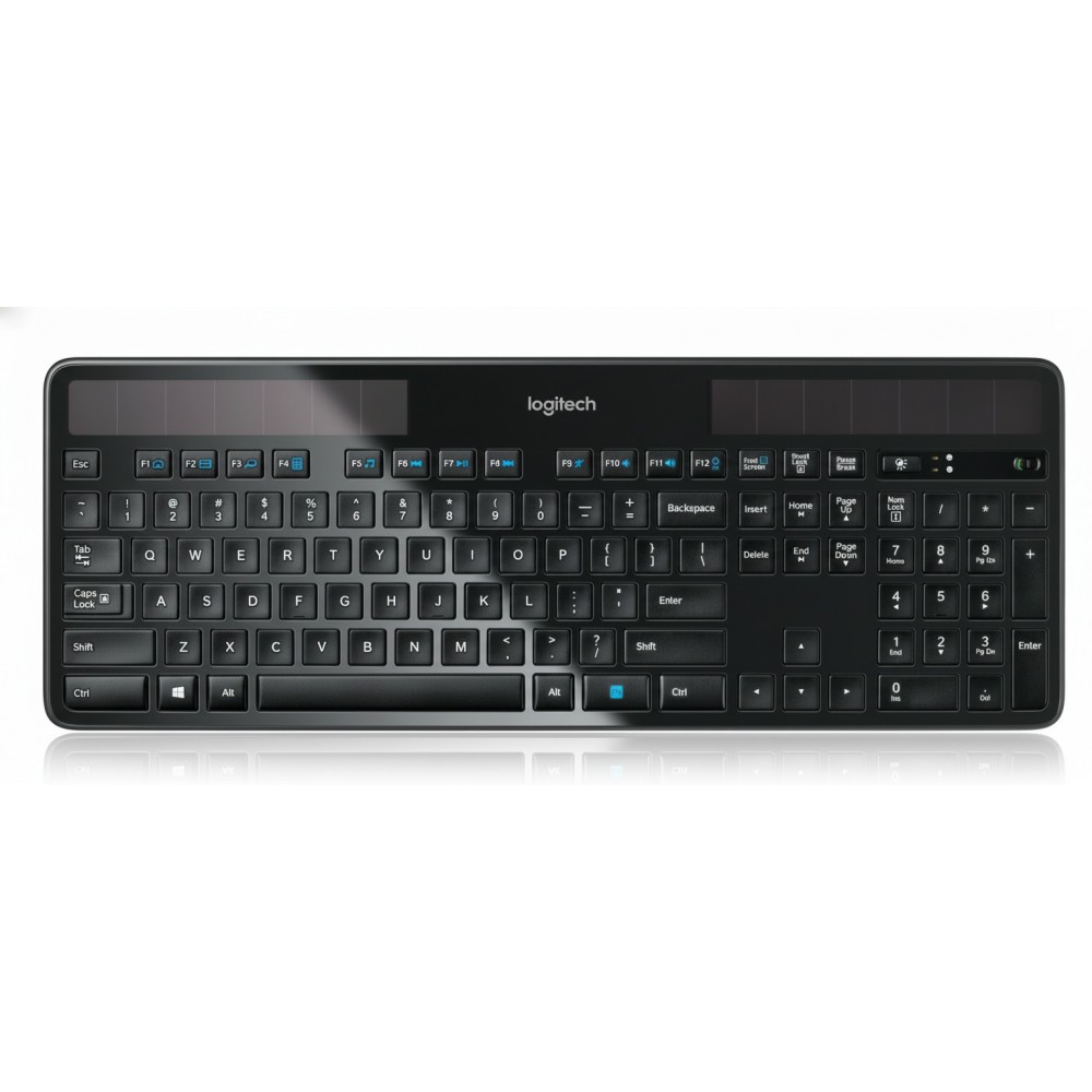 The Logitech K750 is a wireless, solar-powered keyboard designed for business and professional environments where reliability and low maintenance are paramount. It directly addresses the operational challenge of managing battery life in a large fleet of wireless peripherals. By drawing power from any light source, including standard indoor office lighting, it eliminates the need for disposable batteries or charging cables, reducing electronic waste and support overhead. At just 1/3-inch thick, the ultra-thin profile provides a modern aesthetic while promoting a more neutral and comfortable typing posture. The keyboard utilizes Logitech's Advanced 2.4 GHz wireless technology, delivering the reliability of a wired connection with the flexibility of wireless. This is facilitated by the compact Unifying receiver, which ensures a stable connection with virtually no delays or dropouts and supports the addition of other compatible Logitech devices without occupying extra USB ports. Engineered for immediate deployment, the K750 requires no software installation for basic operation. Its full-size layout includes a dedicated number pad, ensuring maximum productivity for users working with spreadsheets and data entry. The plug-and-play simplicity and robust, light-powered design make it an ideal solution for IT managers seeking to deploy dependable, low-touch hardware across an organization.