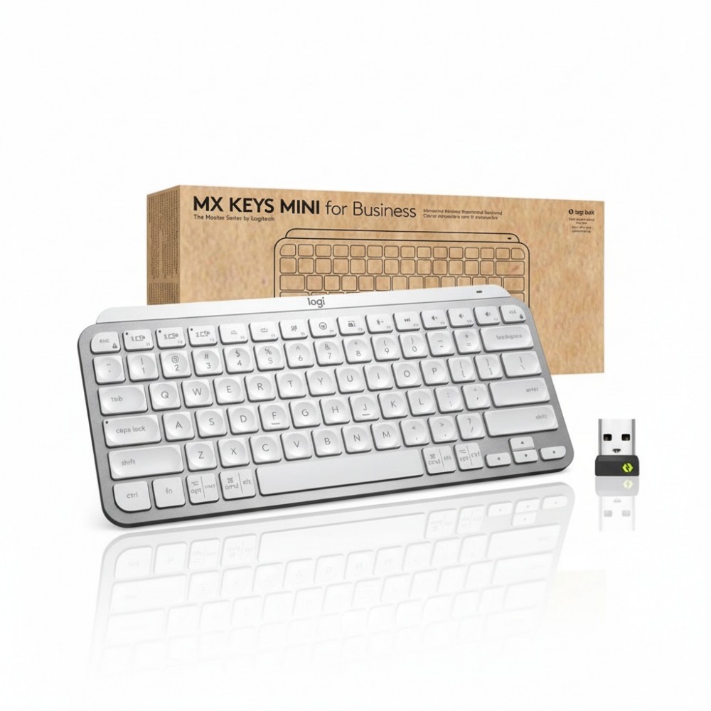 The Logitech 920-010595 MX Keys Mini for Business is a compact, high-performance wireless keyboard designed for professionals in managed IT environments. It addresses the need for a secure, reliable, and versatile typing solution that occupies minimal desk space. Built for users who frequently switch between devices, it provides a seamless and efficient workflow without compromising on comfort or capability. Its minimalist form factor is ideal for focused workspaces, agile desks, or professionals who need a portable yet robust keyboard. This keyboard's core technical advantage lies in its dual wireless connectivity, featuring both Bluetooth Low Energy and the Logi Bolt USB receiver. Logi Bolt technology is engineered for enterprise-level security, offering a fully encrypted and FIPS-compliant connection that remains stable even in congested wireless environments. This ensures that sensitive business data is protected. The Perfect Stroke keys are spherically dished to match the shape of fingertips, resulting in a fluid, quiet, and highly precise typing experience that enhances productivity and reduces errors. Designed for effortless deployment, the MX Keys Mini fits perfectly into any professional setting. Its tenkeyless layout saves space, allowing for better mouse placement and improved ergonomics. The keyboard can pair with up to three different devices, and users can instantly switch between a computer, tablet, or phone with a single press of an Easy-Switch button. Management is streamlined through the Logi Options+ software, allowing for the customization of F-keys to automate repetitive tasks and further boost efficiency.