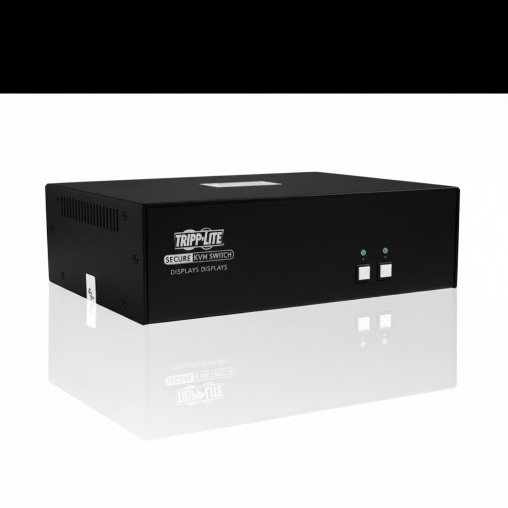 The Eaton B002-DP2A2-N4 is a high-security, 2-port, dual-monitor DisplayPort KVM switch engineered for environments where sensitive data protection is paramount. This robust device serves as a critical interface for managing two computers from a single console, effectively mitigating cyber threats by ensuring strict data isolation. It is an ideal solution for government, military, finance, and healthcare sectors, where adherence to stringent security protocols is mandatory. Designed to prevent data leakage and cross-talk between connected systems, the B002-DP2A2-N4 features electronically isolated KVM ports. This design ensures that data transfer between computers, even those with varying security classifications, is impossible. The switch supports crystal-clear Ultra HD video resolutions up to 3840 x 2160 (4K x 2K) at 30 Hz, providing exceptional visual fidelity essential for detailed work. Deployment of this secure KVM switch typically occurs at the user's workstation, connecting two host computers to a single set of DisplayPort monitors, a USB keyboard, a USB mouse, and audio peripherals. The unit's anti-tampering protection, which disables the device if the housing is opened, further enhances physical security. Management is simplified through intuitive front-panel pushbuttons, purposefully excluding hotkey or OSD switching methods to maintain data integrity and security.