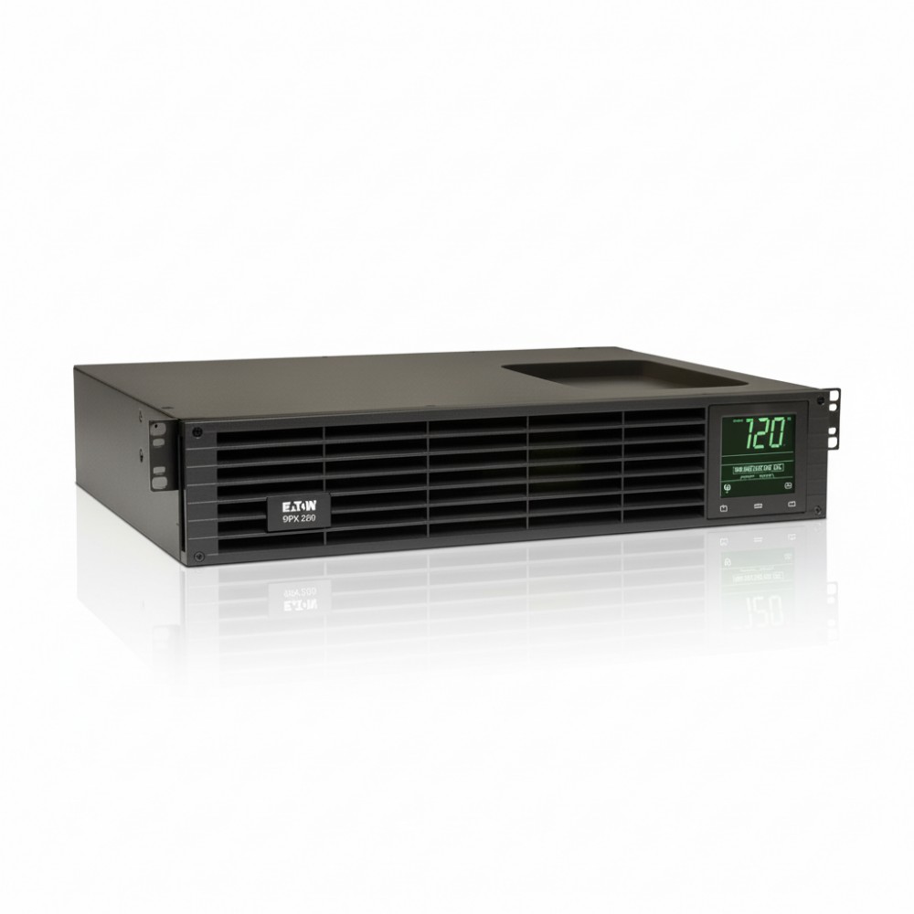 The Eaton SMART1000RM2U is a line-interactive UPS designed for IT infrastructure environments such as network closets, server racks, or branch-office equipment. It delivers 1 kVA (800 W) of sine-wave backup power and offers automatic voltage regulation (AVR) to correct undervoltages and overvoltages without draining the battery. Rack-mountable in a 2U format or convertible to tower/Wall-mount, it fits into standard 19-inch equipment enclosures and provides six NEMA 5-15R downstream receptacles, with four of them in two remotely switchable banks. The front panel features an interactive LCD plus USB and DB9 communication ports, enabling remote monitoring and shutdown via optional network cards. Its combination of regulated output, remote management options and flexible mounting makes it appropriate for critical network, telecom and server gear that require uninterrupted power and clean AC in constrained rack spaces.