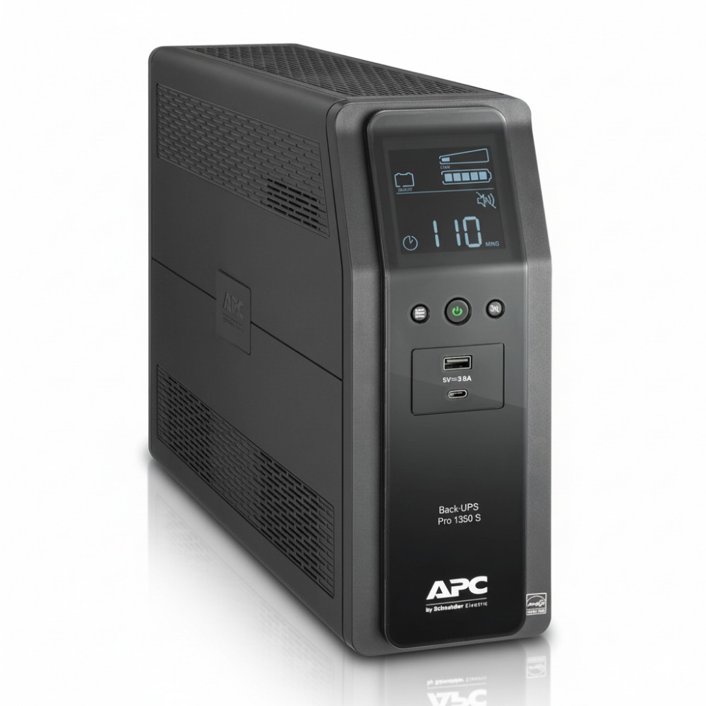 The APC BR1350MS is a high-performance 1350VA/810W line-interactive UPS engineered to protect workstations, network equipment, and home electronics from power interruptions and voltage fluctuations. It delivers pure sine wave output, ensuring stable, clean power for devices equipped with Active PFC power supplies—making it ideal for high-end PCs, NAS systems, routers, and home entertainment setups.Equipped with Automatic Voltage Regulation (AVR), the BR1350MS corrects high and low voltage conditions without drawing from the battery, extending its service life and minimizing downtime. The integrated LCD interface provides instant visibility into UPS status, including load percentage, input/output voltage, and estimated runtime. Its intuitive design enables easy local management and diagnostics.The UPS offers 10 total NEMA outlets—5 with battery backup and surge protection, and 5 surge-only—providing flexible connectivity for multiple devices. Dual USB charging ports (Type-A and Type-C) on the front panel allow fast charging for mobile devices. PowerChute software support enables graceful system shutdown and advanced power management, safeguarding valuable data and ensuring continuous operation even during extended outages.Compact, quiet, and energy-efficient, the APC BR1350MS is the ideal power backup solution for professionals who demand reliable, high-quality power protection for home and small business environments.