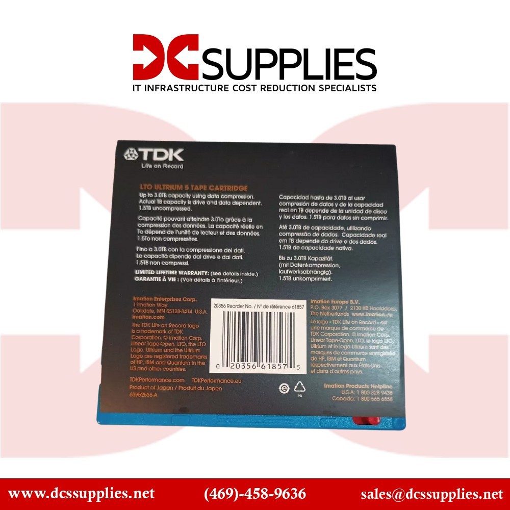 With eco-friendly packaging and rugged construction, the TDK 61857 balances environmental responsibility with enterprise-grade performance. It integrates smoothly into LTO-5 libraries and systems, ensuring a consistent and trusted storage medium for your most critical data assets.