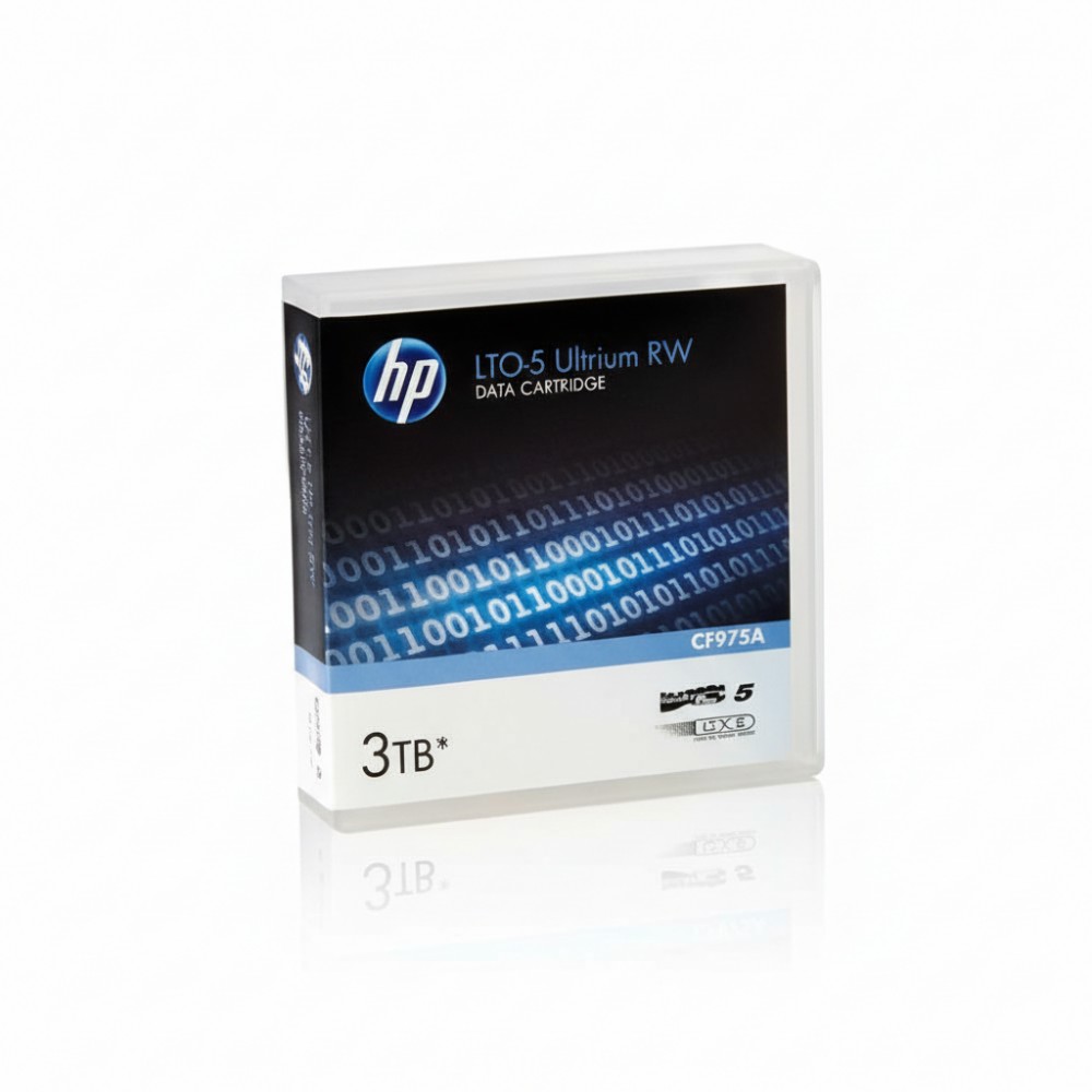 The HP C7975A is a rewritable LTO-5 Ultrium data cartridge designed for enterprise-grade backup and archive applications, used by IT engineers managing data protection infrastructures. It offers a native capacity of 1.5 TB and a compressed capacity of up to 3 TB at 2:1 compression, enabling significant storage density in tape libraries. The cartridge supports sustained transfer rates up to approximately 280 MB/s, making it suitable for automated tape library environments in data centres. With a design life of up to 30 years under proper storage conditions, it fits long-term retention requirements and integrates with LTFS (Linear Tape File System) for simplified file-based access in the archive tier.
