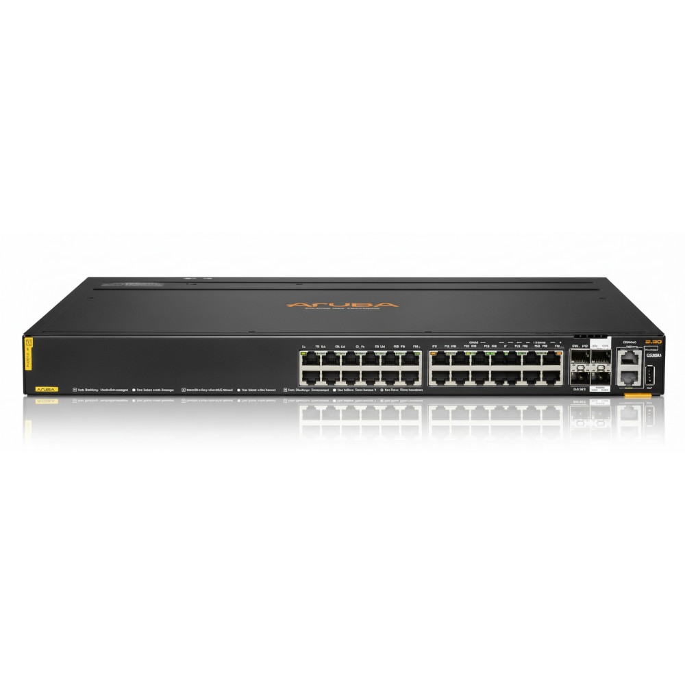 The HPE Aruba R8Q68A CX 6200M is a stackable Layer 2/3 access switch offering 24 auto-sensing Gigabit Ethernet ports with full ClassClass 4 PoE (up to 740 W total) and four fixed 1G/10G SFP+ uplink/stacking ports. Built on Aruba Gen7 ASIC architecture, the switch is designed for enterprise branch, campus, and SMB environments seeking scalable, high-performance edge solutions with integrated PoE for devices like wireless APs and IP cameras. With advanced stacking, routing, security, QoS, and automation features, it enables streamlined deployment and centralized network segmentation and management