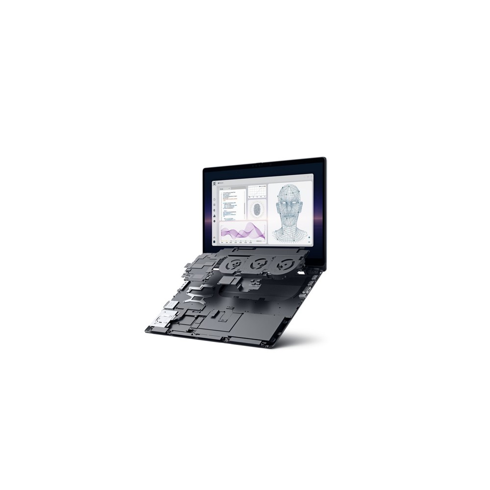 The system includes a 16-inch 1920 × 1200 anti-glare display with 120Hz refresh rate, Wi-Fi 7 (802.11be), and modern enterprise I/O including USB-C/Thunderbolt-class connectivity and HDMI output depending on configuration.