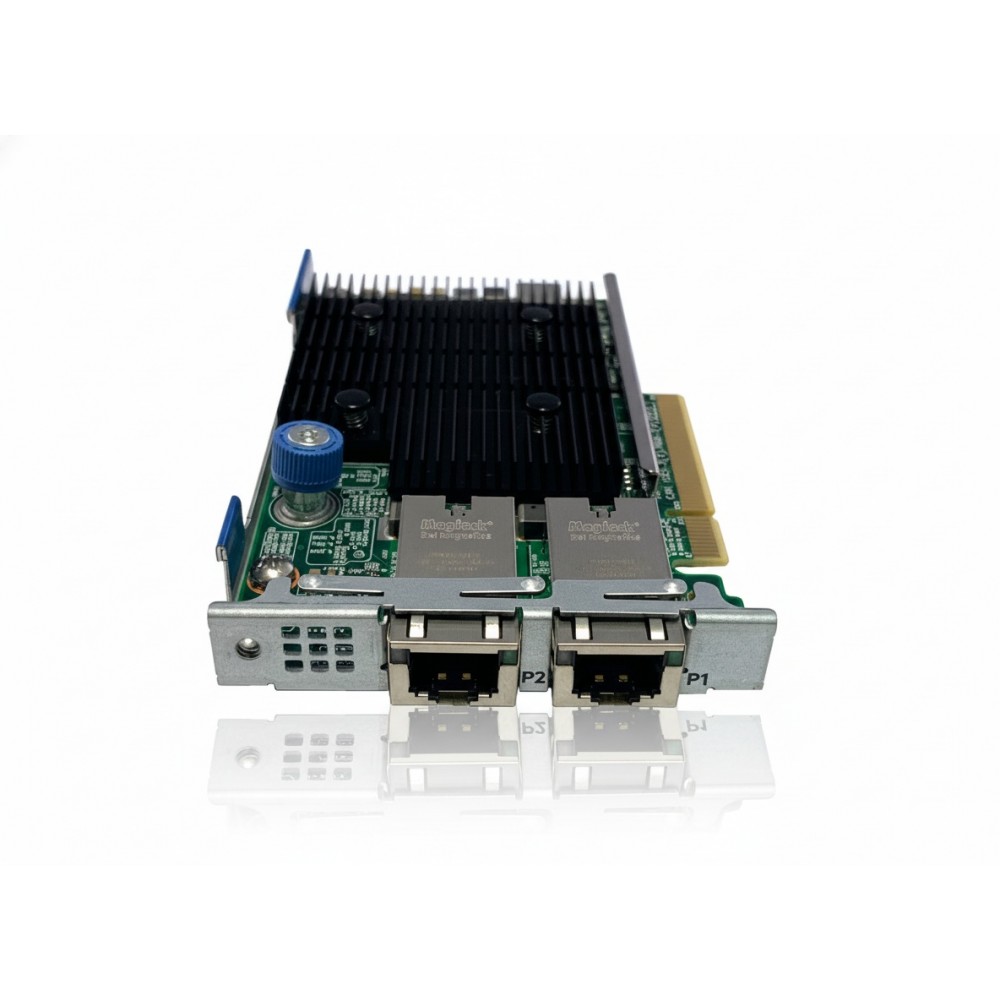 The HPE 817721-B21 is a dual-port 10 Gigabit Ethernet adapter designed for server mezzanine/FLR-T slots, providing two RJ-45 10GBASE-T ports that deliver full line-rate performance per port while preserving standard PCIe slot real estate. It enables high-bandwidth uplinks over copper structured cabling (Cat6A/Cat7) and supports backward compatibility to 1 Gb/s. Advanced I/O features such as SR-IOV, tunnel offloads (VXLAN/NVGRE) and full virtualization awareness allow it to handle virtualized workloads, storage traffic, and converged infrastructure in rack servers. Ideal for environments where dual 10 Gb/s copper uplinks, efficient server I/O and simplified cabling are required, this adapter fits dense compute nodes, branch servers and rack deployments seamlessly.