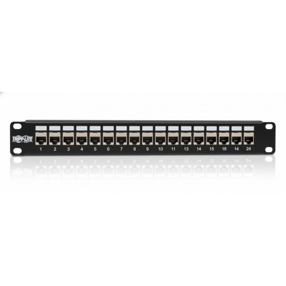 • 24 shielded RJ45 ports for high-density patching.