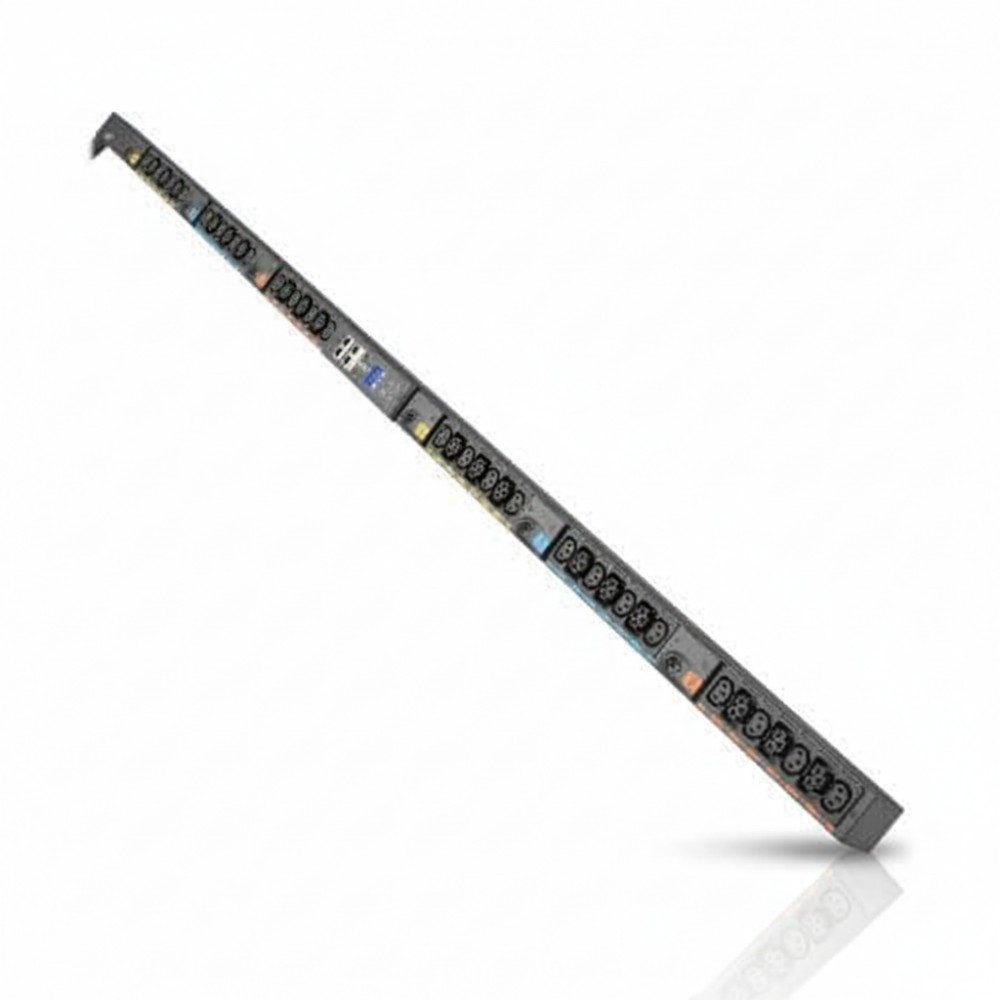 The Eaton EVMA4609X is a three-phase, vertically mounted rack power distribution unit designed for IT infrastructure deployments and data centre racks. It delivers up to 17.3 kW (60 A, 208 V Delta) input power and distributes it to 42 outlets (24 × C13 and 18 × C39 combo) to support high-density equipment. It is suited for a 0U vertical installation in a 41U rack and is commonly used in data centres, colocation facilities, and enterprise server rooms. The PDU integrates with Eaton’s Rack PDU G4 platform and supports remote monitoring and control via an embedded Gigabit network module.