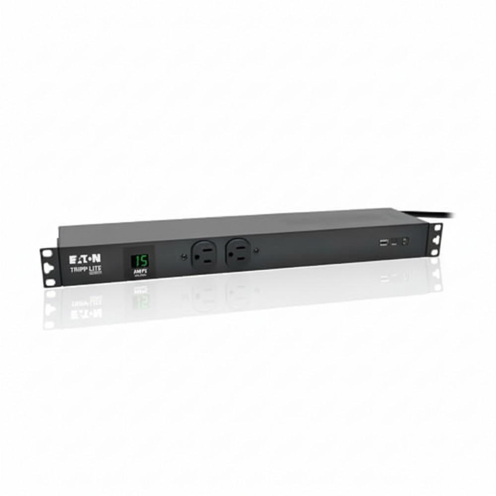 The Eaton PDUMH15-ISO is a robust, single-phase metered power distribution unit (PDU) designed to deliver reliable 120V power to essential IT equipment within rack enclosures. This Tripp Lite Series PDU addresses the critical need for efficient power management and advanced circuit protection in data centers, server rooms, and network closets. It effectively prevents circuit overloads by providing real-time, local monitoring of the PDU's output current, a crucial capability as equipment density increases and power demands fluctuate. Equipped with premium Isobar network-grade AC surge and noise suppression, this PDU safeguards connected devices from damaging power spikes and line noise, ensuring uninterrupted operation and extending equipment lifespan. Its high 3840-joule surge suppression rating offers peace of mind for sensitive electronics, translating directly into enhanced system reliability and reduced hardware failure rates. The compact 1U rackmount form factor makes it ideal for horizontal installation, while its 14 NEMA 5-15R outlets provide ample connectivity for multiple servers, switches, and other rack-mounted devices. Installation flexibility is further enhanced by its reversible housing and a generous 15-foot power cord, allowing for optimal placement within diverse rack configurations.
