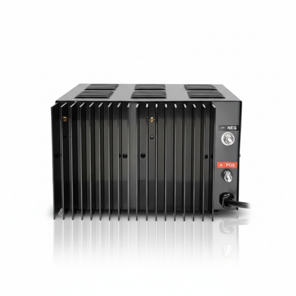The Eaton PR60 is a robust, precision-regulated AC-to-DC power supply from the trusted Tripp Lite series, designed to deliver stable and clean 13.8V DC power to a wide array of sensitive electronic equipment. Engineered for reliability, this unit effectively converts standard 120V AC utility power into a precisely regulated DC current, ensuring consistent performance for critical applications. Its primary purpose is to support sensitive DC-powered systems, including commercial and land-mobile radios, amateur ham radio setups, sophisticated bench test equipment, and point-of-sale systems, where stable voltage and protection from power fluctuations are paramount. This power supply boasts a substantial 60-amp capacity, making it well-suited for high-current applications. Featuring a solid-state integrated circuit and a heavy-duty power transformer, the PR60 maintains excellent output voltage regulation while completely isolating connected equipment from disruptions inherent in utility AC power. Advanced safety mechanisms, such as crowbar overvoltage protection and current-limiting electronic foldback, are integrated to safeguard valuable devices against harmful surges and overcurrent conditions, thus enhancing system longevity and operational integrity. With a compact, low-profile design, the Eaton PR60 maximizes operating space, offering flexibility for various installation environments, from fixed base stations to mobile setups and industrial test benches. Its vented cabinet and large heat sinks ensure cool, continuous operation even under demanding loads. An illuminated on/off switch provides intuitive, one-touch control, simplifying power management in dynamic IT infrastructure or field deployments.