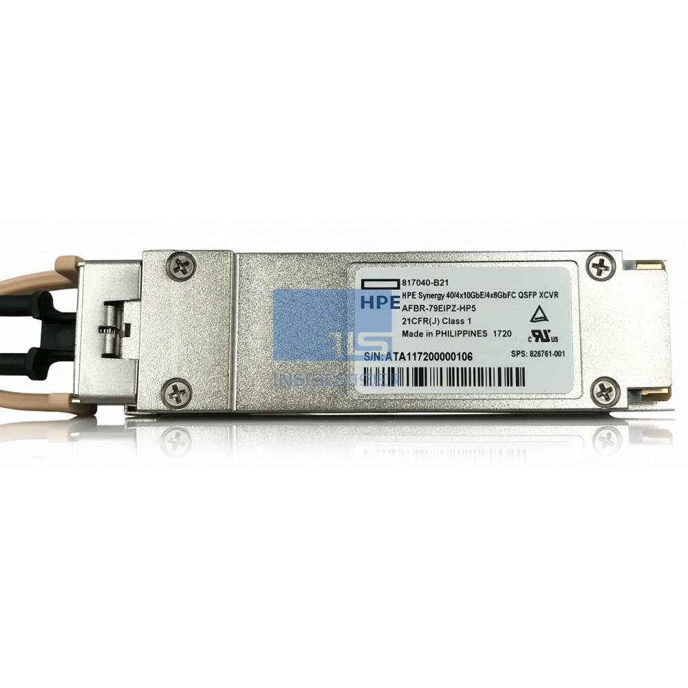 The 817040‑B21 40GBASE‑SR4 QSFP transceiver module (compatible) enables high-density 40 Gigabit Ethernetconnectivity over multimode fiber using standard MPO/MTP connections. Supporting link distances up to 150 m on OM4 and 100 m on OM3 fiber, this module delivers full-duplex 40 Gbps throughput via four independent 10.3125 Gbps lanes. It features Digital Optical Monitoring (DOM) for real‑time diagnostics and is TAA compliant—suitable for government and compliant enterprise environments.Engineered for use in HPE BladeSystem and Synergy interconnects, this plug-and-play module offers reliable, manufacturer‑tested performance for data centers, aggregation switches, and high-speed fiber uplinks. Its low-power design (<1.2 W) and MSA‑compliant QSFP+ interface ensure broad compatibility with enterprise networking gear.