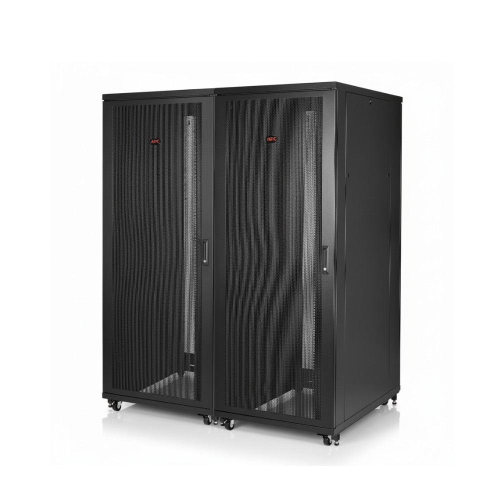 The APC AR2580 is a 42U server rack designed for high-density IT deployments. It features a robust 800mm x 1200mm footprint, accommodating a wide range of rack-mounted equipment. The enclosure includes integrated vertical 1U mounting spaces for efficient cable management. Ideal for data centers, server rooms, and network closets.
