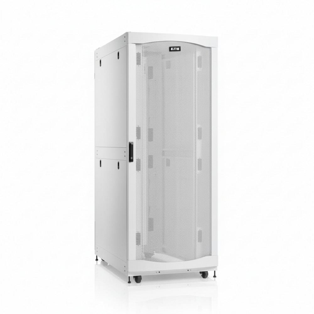 The Eaton SRH453242W is a 45-rack-unit, extra-wide heavy-duty server rack enclosure designed for IT infrastructure engineers who deploy high-density servers and AI/edge computing clusters. It supports up to 5,000 lb (static) and 3,500 lb (rolling) loads in a steel 2.5 mm frame with reinforced welds and gussets to meet heavy equipment demands. The unit’s 31.5″ (800 mm) width allows additional side channels for cabling and accessories, making it suitable for data center, edge-facility, or campus-server-room deployment. It integrates with Eaton’s SmartRack system of accessories and supports locking side panels, front/rear doors, and security features for compliance-aware environments.