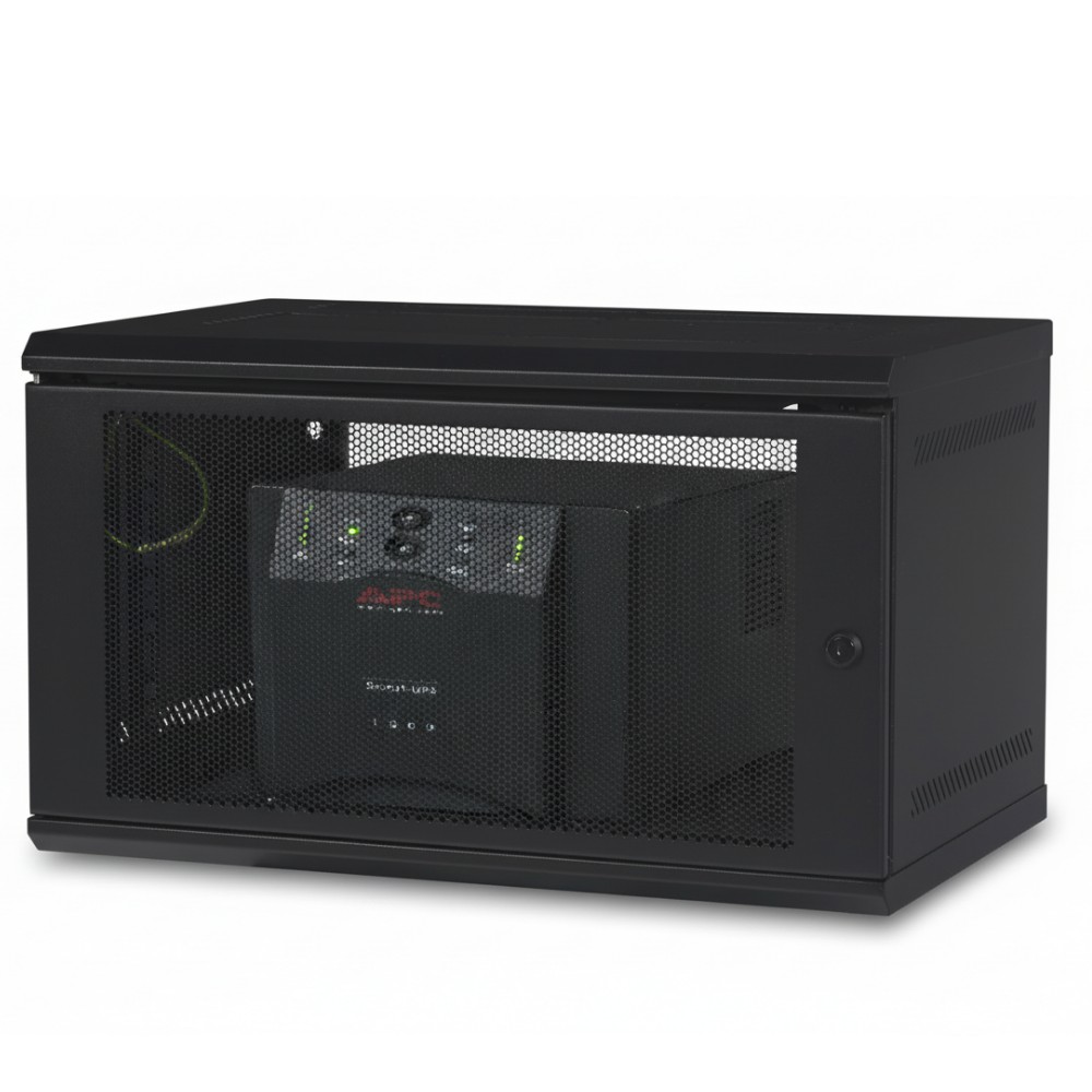 This 6U enclosure supports standard 19-inch rack-mount equipment and provides a structured solution for organizing switches, patch panels, and small UPS systems. Its design allows for efficient cable routing and equipment protection in distributed IT setups.