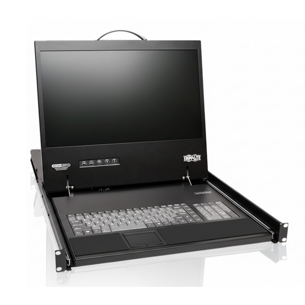 • Built-in 19″ LCD monitor, full-size keyboard and touchpad in a 1U rack-mount drawer saves rack space and consolidates console hardware.