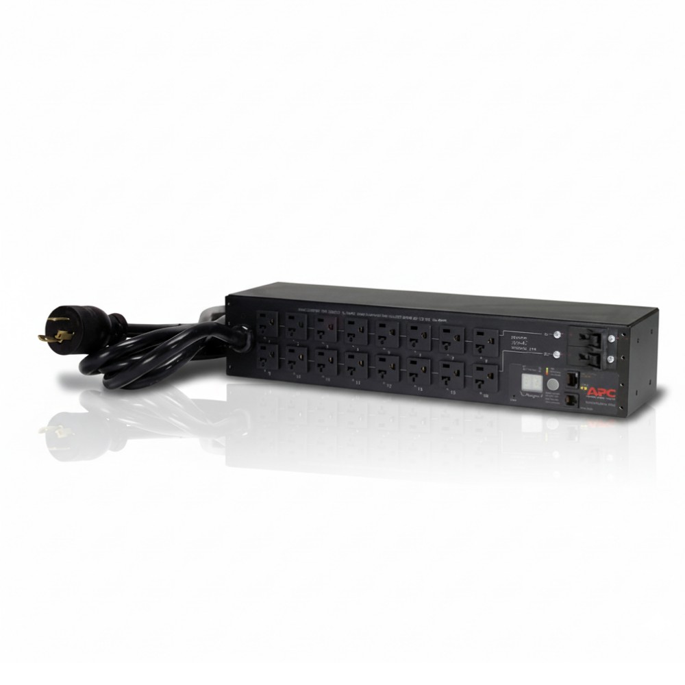 The APC AP7902B is a 2U switched rack Power Distribution Unit (PDU) designed for efficient power distribution in data centers and server rooms. It features 16 NEMA 5-20R outlets, providing ample connectivity for various IT equipment. With a 30A capacity at 120V, this PDU ensures reliable power delivery to high-demand devices. The 10-foot power cord with a NEMA L5-30P plug offers flexibility in installation, while the included cord retention bracket and horizontal mounting brackets facilitate secure and organized setup.The APC AP7902B is engineered to provide efficient and reliable power distribution in server racks and data centers. Its 2U form factor allows for space-saving installation, while the 16 NEMA 5-20R outlets accommodate various equipment types. The 30A capacity ensures that high-power devices receive adequate power, and the 10-foot power cord with NEMA L5-30P plug offers flexibility in positioning the PDU within the rack. The inclusion of a cord retention bracket and horizontal mounting brackets simplifies the setup process, making it ideal for IT professionals seeking a dependable power solution.