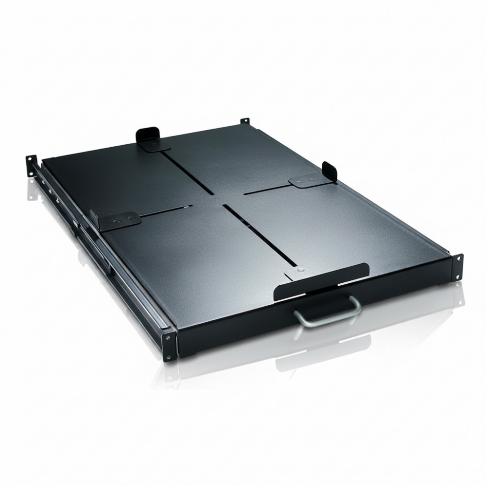1U sliding shelf for racks, supports 200 lb, depth adjustable 28–40 in, ideal for non-rack devices.