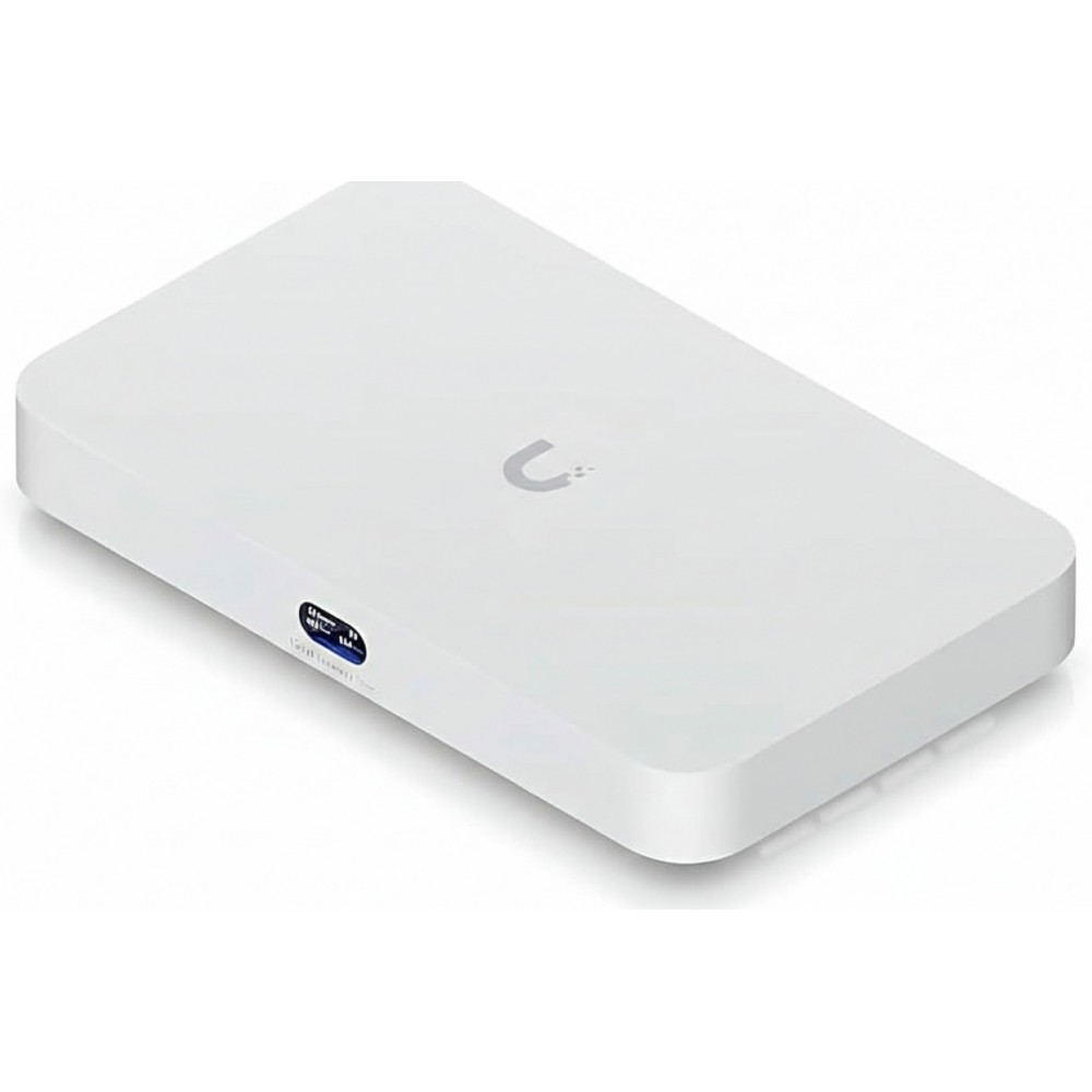 The Ubiquiti UCG-FIBER is a compact multi-gigabit cloud gateway and router designed for fiber internet and high-throughput network environments. It combines dual 10 GbE SFP+ fiber and 10 GbE RJ45 ports with integrated 2.5 GbE LAN and PoE+ support to deliver routing, switching, and security services. The device includes advanced IDS/IPS, firewall, VPN, SD-WAN capabilities, and supports UniFi OS applications for network, protect, access, talk, and connect management. It also features a selectable NVMe SSD slot for local storage and an LCD status display for system monitoring. This gateway fits edge or branch deployments in enterprises, service provider fiber networks, or advanced home/office networks requiring unified connectivity and security services.