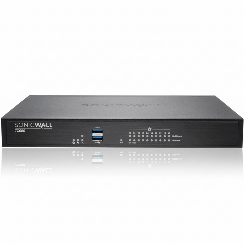 The SonicWall TZ600P (Part Number: 02-SSC-0600) is a robust next-generation firewall (NGFW) appliance engineered to deliver comprehensive network protection for small to mid-sized organizations and distributed enterprises. This powerful security solution is ideal for securing remote offices, branch locations, and retail environments, providing high-speed threat prevention and an integrated security platform. A key differentiator of the TZ600P is its integrated Power over Ethernet (PoE/PoE+) capabilities, which simplify infrastructure by delivering both data and power to compatible devices like wireless access points, IP cameras, and phones directly from the firewall. Leveraging SonicWall's advanced security technologies, including Reassembly-Free Deep Packet Inspection (RFDPI) and Real-Time Deep Memory Inspection (RTDMI), the TZ600P effectively detects and blocks sophisticated threats such as malware, ransomware, and zero-day attacks. It offers the processing power necessary to inspect encrypted TLS/SSL traffic, ensuring that hidden threats within secure connections are also mitigated. Furthermore, its Secure SD-WAN functionality enables organizations to optimize network efficiency and connectivity across geographically dispersed sites, providing a secure alternative to traditional, more costly WAN solutions. Designed for flexible deployment, the TZ600P operates in a compact desktop form factor, making it suitable for various office environments. Management is streamlined through the intuitive SonicOS graphical user interface (GUI) for local control or via the cloud-based SonicWall Capture Security Center and Global Management System (GMS) for centralized oversight of an entire security ecosystem. This unified approach simplifies configuration, monitoring, and policy enforcement, ensuring consistent security posture across all managed devices.
