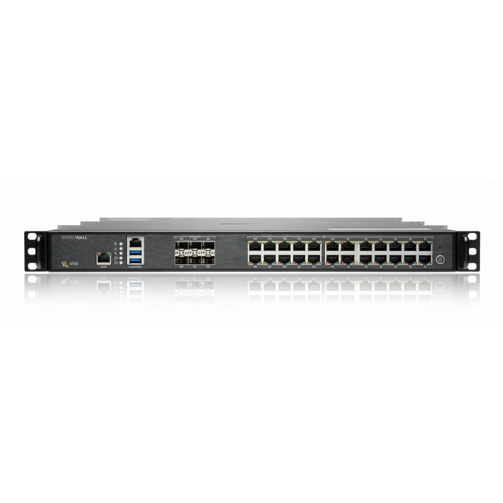 The SonicWall NSa 4700, part number 02‑SSC‑4328, is designed for medium to large enterprise deployments with demanding performance and advanced security. This appliance-only SKU delivers Gen‑7 performance without bundled subscriptions — ideal for organizations that already manage their security services separately.It supports up to 18 Gbps of firewall throughput and 9.5 Gbps of threat prevention, giving ample capacity for encrypted traffic, advanced inspection, and real-time threat enforcement. The 1U form factor includes 24 × 1 GbE RJ‑45 ports plus 6 × SFP+ multi-gig ports (supporting 10G, 5G, 2.5G, 1G), giving it flexibility for high-bandwidth or uplink-heavy topologies.The NSa 4700 runs SonicOS 7, enabling features like secure SD‑WAN, zero-touch deployment, and centralized management. With support for very high connection counts (both SPI and DPI), and strong VPN throughput, this firewall fits at the edge of large campus networks, data centers, or internet peering points.