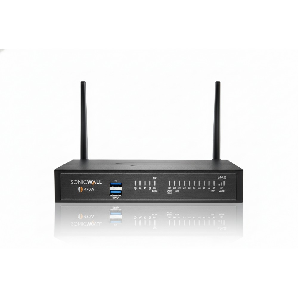 The SonicWall 02-SSC-6808 is a comprehensive security solution centered around the TZ470W Wireless Next-Generation Firewall (NGFW), tailored for small to mid-sized organizations and distributed enterprise environments. This appliance delivers robust, enterprise-grade protection, effectively safeguarding networks against a rapidly evolving threat landscape. It integrates high-performance networking with advanced security features, providing a secure and reliable foundation for critical business operations. At its core, the TZ470W leverages the powerful SonicOS 7.0 operating system, enabling a suite of sophisticated security services. These include the patented Capture Advanced Threat Protection (ATP) with Real-Time Deep Memory Inspection (RTDMI™) technology, which proactively detects and blocks advanced zero-day threats and malware by inspecting directly in memory. Coupled with Reassembly-Free Deep Packet Inspection (RFDPI), gateway anti-virus, intrusion prevention, and content filtering, this firewall ensures multi-layered defense against a wide array of cyberattacks. Designed for flexible deployment, the TZ470W features a compact desktop form factor and supports Zero-Touch Deployment, simplifying setup across multiple locations with minimal IT intervention. It offers versatile connectivity options, including a combination of 1 Gigabit and 2.5 Gigabit Ethernet ports, along with integrated 802.11ac Wave 2 (Wi-Fi 5) wireless capabilities. Management is streamlined through platforms like the Network Security Manager, CLI, SSH, and a user-friendly Web UI, ensuring efficient operational oversight for security teams.