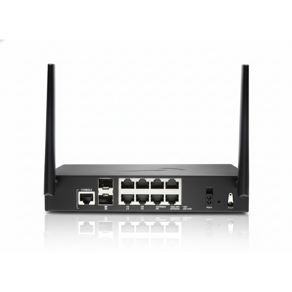 The SonicWall TZ470W, SKU 02-SSC-6810, is a Gen-7 next-generation firewall with integrated 802.11ac wireless, built for branch offices or distributed enterprise sites. It delivers up to 3.5 Gbps firewall throughput and supports 1.5 Gbps VPN throughput, making it highly capable for heavy internet usage and remote connectivity.On the network front, it has 8 × 1 GbE RJ-45 ports, 2 expansion slots (SFP+), 2 USB 3.0 ports, and a console interface. The appliance runs SonicOS 7, bringing SD-WAN capabilities, zero-touch deployment, VLAN segmentation, and deep threat inspection with full NGFW services.For storage and logging, it supports expandable on-board storage (up to ~256 GB), which helps with local event logging, firmware backups, or caching. The unit supports unified management with other SonicWall devices, and is available in both desktop and 1U rack-mount form.