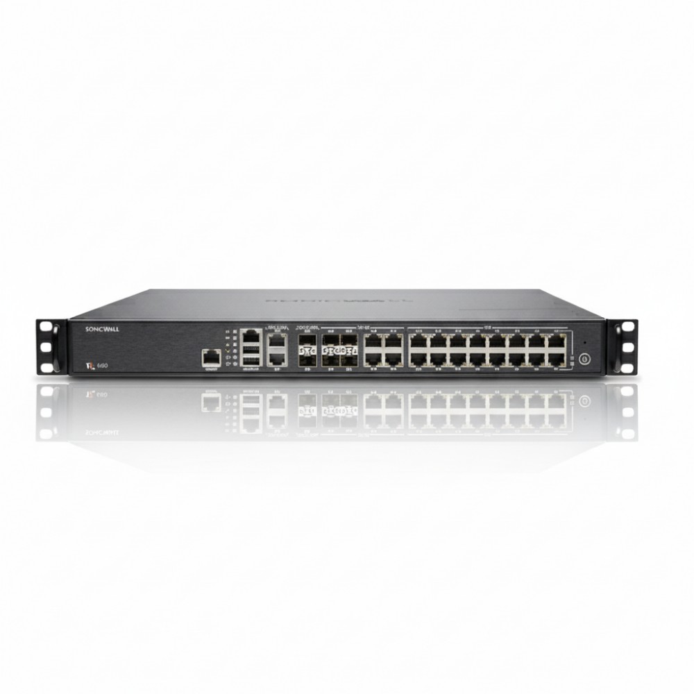 The SonicWall NSa 5650 is a robust next-generation firewall appliance engineered to deliver comprehensive, high-performance security for mid-sized networks, distributed enterprises, and branch offices. It addresses the critical need for advanced threat prevention without compromising network speed, utilizing a multi-core hardware architecture and patented deep packet inspection technologies. This appliance is designed to stop sophisticated cyberattacks, including zero-day threats and encrypted malware, ensuring business continuity and data integrity. At its core, the NSa 5650 employs SonicWall's Reassembly-Free Deep Packet Inspection (RFDPI) and Real-Time Deep Memory Inspection (RTDMI) engines. These advanced capabilities meticulously examine every byte of network traffic, including TLS/SSL and SSH encrypted connections, to identify and block threats in real-time. This ensures that even hidden or polymorphic malware and intrusions are detected and neutralized before they can impact the network, providing a powerful defense against evolving cyber threats. Designed for flexible deployment, the NSa 5650 typically integrates as a 1U rack-mountable unit within an existing IT infrastructure. Its comprehensive SonicOS operating system offers extensive network control and flexibility, including application intelligence, content filtering, and secure SD-WAN capabilities. The appliance's integrated wireless controller further extends secure network perimeters by facilitating the management of SonicWave wireless access points, making it a versatile security solution for complex environments.