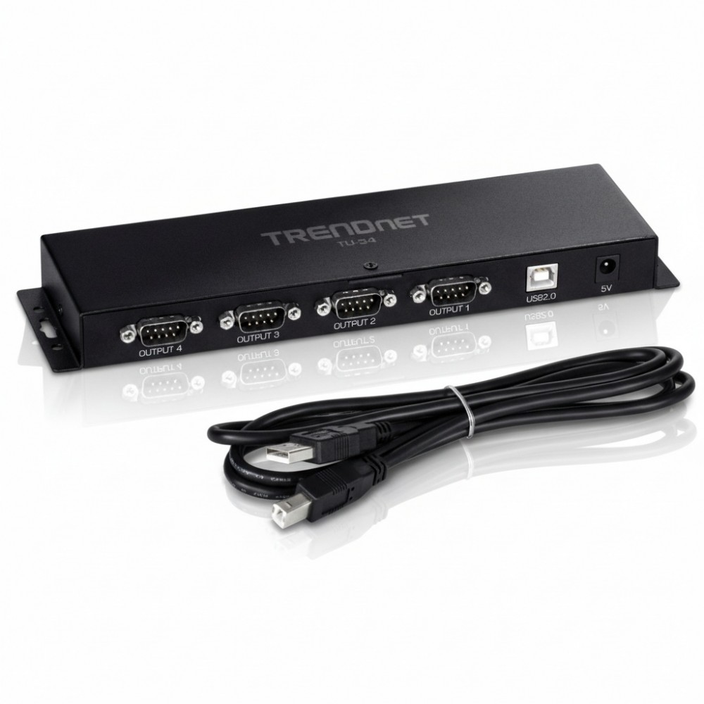 The TRENDnet TU-S4 is a 4-Port USB to Serial RS2-232 Hub designed for IT professionals and engineers who need to bridge the gap between modern computers and legacy serial-based devices. It provides a straightforward and reliable solution for connecting peripherals such as modems, printers, industrial automation equipment, and networking hardware to a host computer through a single USB port. This eliminates the need for older, dedicated serial cards in desktop systems and provides essential connectivity for laptops that lack native RS-232 ports. This hub is engineered for efficiency and broad compatibility, supporting simultaneous communication with up to four separate serial devices. Its architecture ensures stable connections and consistent data transfer, which is critical in environments where serial device management is a daily operational task. The adapter draws power directly from the USB bus, simplifying deployment by removing the need for an external power adapter in most scenarios, making it an ideal tool for both field service and permanent installations. With a compact form factor and an integrated 1-meter USB cable, the TU-S4 offers significant flexibility for various workspace configurations. It supports both Windows and Mac operating systems, ensuring seamless integration into nearly any IT environment without complex driver installations. This plug-and-play functionality allows technicians and administrators to quickly establish connections and begin diagnostics or device management with minimal downtime.
