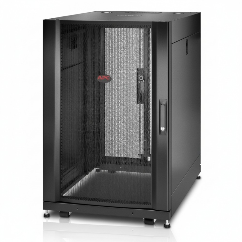 The APC AR3006 is an 18-unit (18U) server rack enclosure in the NetShelter SX line, built for mounting IT equipment in a compact footprint. It is used in branch offices, edge data closets, or small server rooms where vertical space and depth are limited. The cabinet houses networking gear, servers, or storage devices in a secured and ventilated environment, supporting industry-standard EIA-310 mounting. Its form factor and accessory integration make it suitable for deployment under desks or within constrained spaces, while retaining full rack features such as side panels, doors, adjustable mounting rails, and cable access.