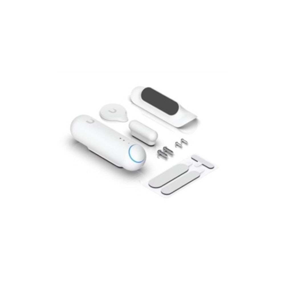 The Ubiquiti UP‑SENSE is a battery‑powered multifunction sensor designed to work with UniFi Protect and Bluetooth‑enabled UniFi access points. It combines motion detection, environmental sensing, door/window state sensing, and sound detection into one compact device to monitor physical activity and ambient conditions. The sensor communicates over Bluetooth Low Energy (BLE 5.0) to supported APs, making it suitable for indoor deployment in offices, entryways, server rooms, or common areas. Powered by a CR123A lithium battery, it can operate for up to one year, reducing maintenance. Events and sensor data integrate into the UniFi Protect interface for centralized alerts and environment monitoring.