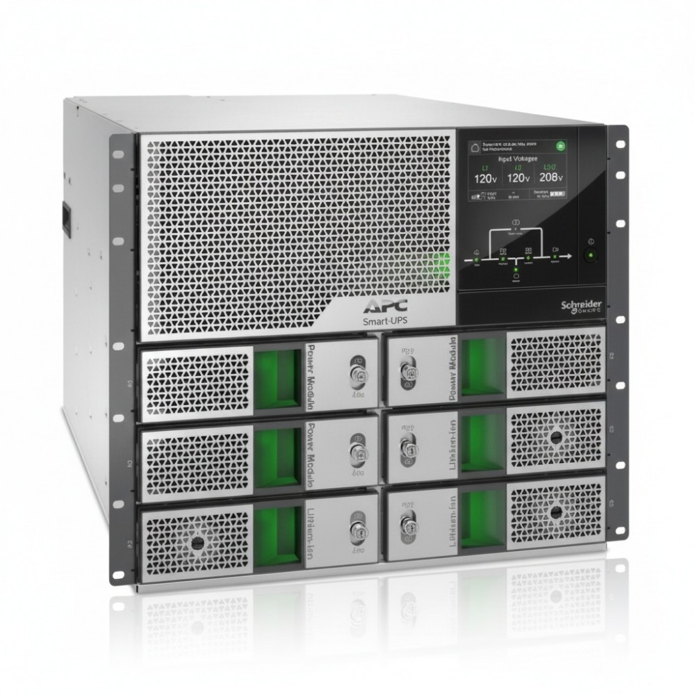The APC SRYL15K20RMXLT Smart-UPS Modular Ultra is a high-density, double conversion online UPS designed to deliver reliable power protection for critical IT equipment in data centers and edge computing environments. It addresses the need for adaptable power in a compact footprint, solving challenges where rack space is at a premium and power requirements are expected to evolve. This system provides resilient, conditioned power for servers, storage, and networking hardware. A core advantage of this model is its next-generation modular architecture combined with long-life Lithium-ion battery technology. This combination results in a UPS that is significantly smaller and lighter than comparable systems using traditional lead-acid batteries, simplifying installation and freeing up valuable rack space. The modular design allows for scalable power, enabling operators to increase capacity from 15kW up to 20kW as business needs grow, ensuring a lower total cost of ownership. Designed for seamless integration, the SRYL15K20RMXLT occupies just 9U of vertical rack space. Its rack-mounted form factor makes it ideal for standardized data center deployments. Management is streamlined through a pre-installed Network Management Card, which enables remote monitoring and control via the Schneider Electric EcoStruxure IT platform. This provides administrators with real-time status updates and visibility from any location.