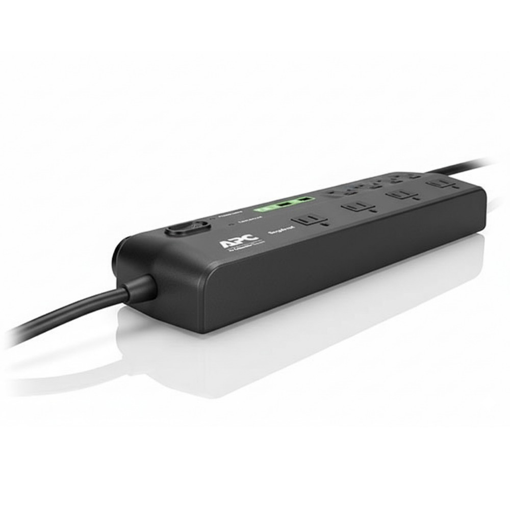 The APC P8T3 is a surge protection strip tailored for home or small office environments, offering 8 NEMA 5-15R outlets and protection against voltage spikes up to ~2,770 J. It includes built-in phone/DSL line protection, a resettable circuit breaker, and LED indicators to signal protection status and wiring faults. The device features transformer-spaced outlets to accommodate bulky plugs without blocking adjacents, and a 6 ft cord with a right-angle plug for compact placement. Use it to safeguard desktops, routers, NAS boxes, and peripherals from power surges and wiring anomalies.